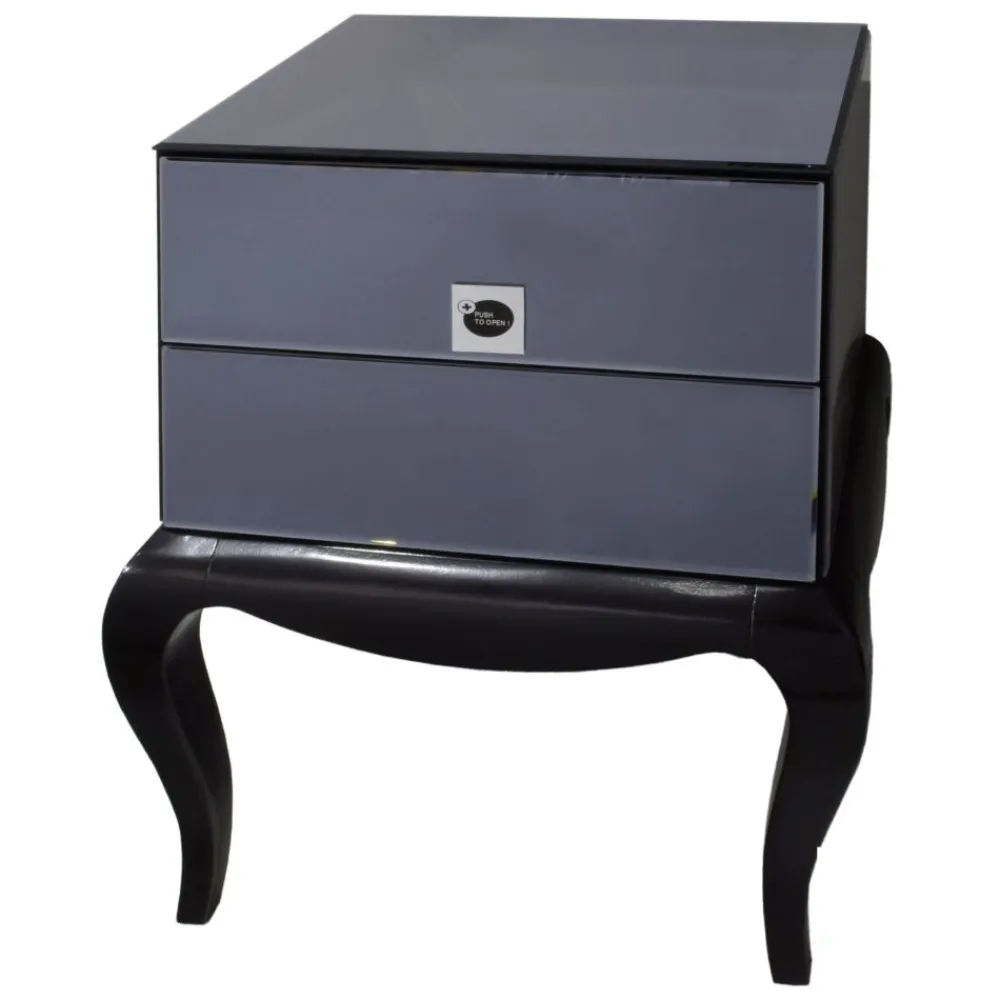 ArteHome Komody*Szafka nocna Bresso glamour czarne lustrzane elementy na drewnianych nóżkach 55/45/62 cm