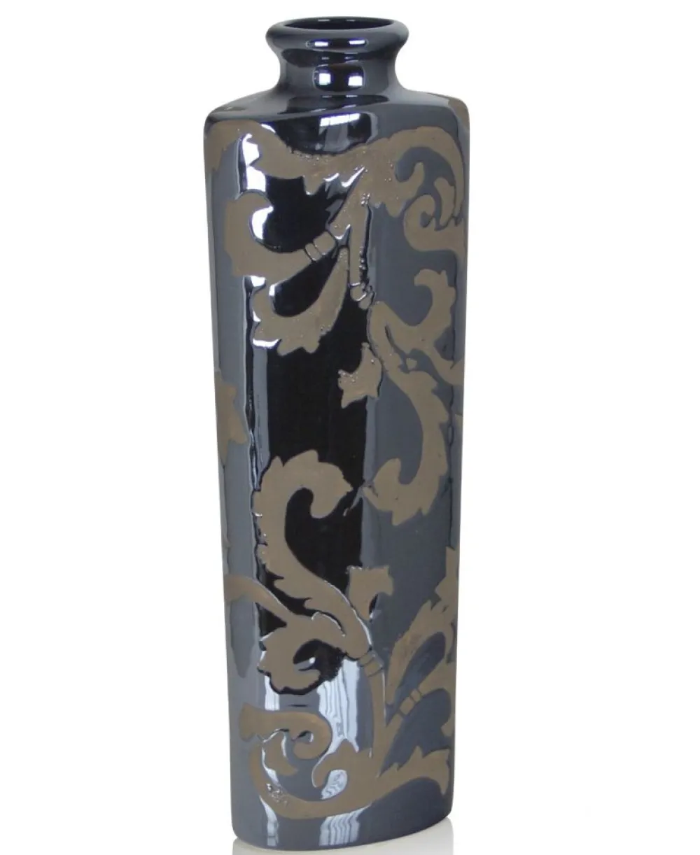 ArteHome Komody*Komoda czarna Violino glamour ze złoceniami i czarnym blatem ze spieku