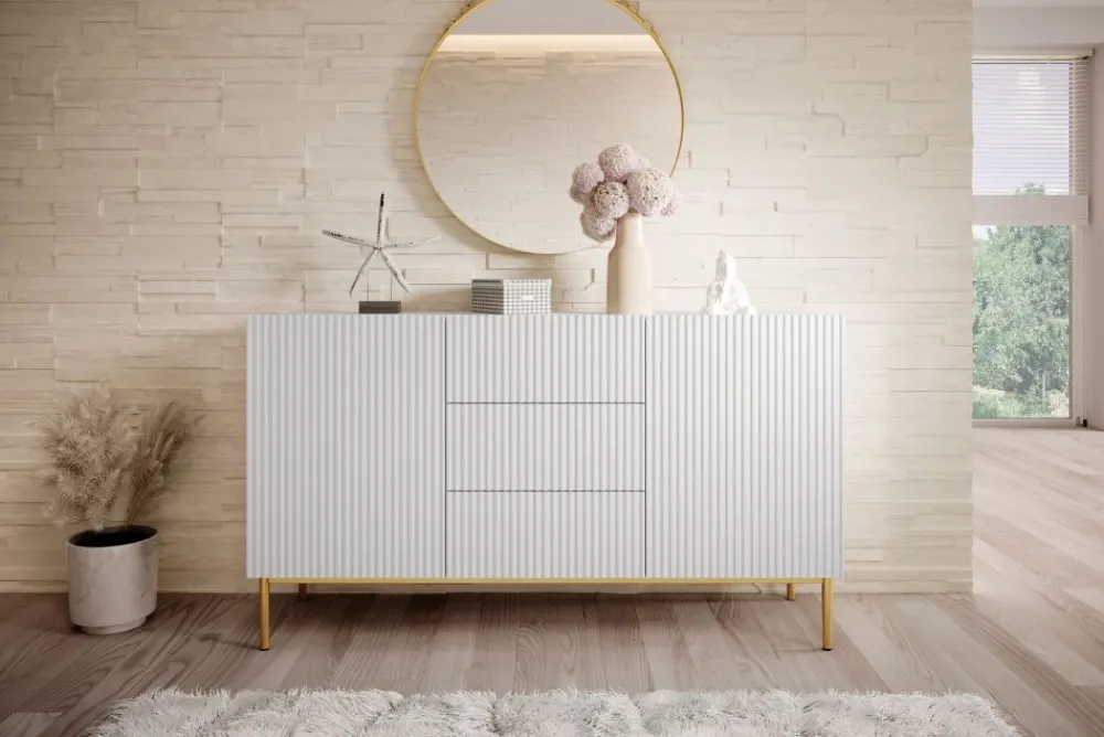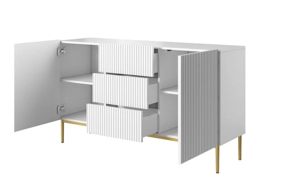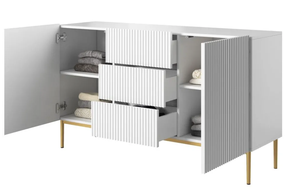 Bogart Komody*NICOLE KOMODA 100 3SZ – biały mat / złoty stelaż