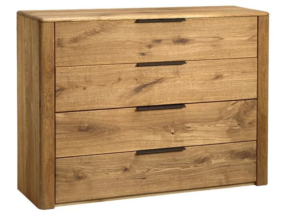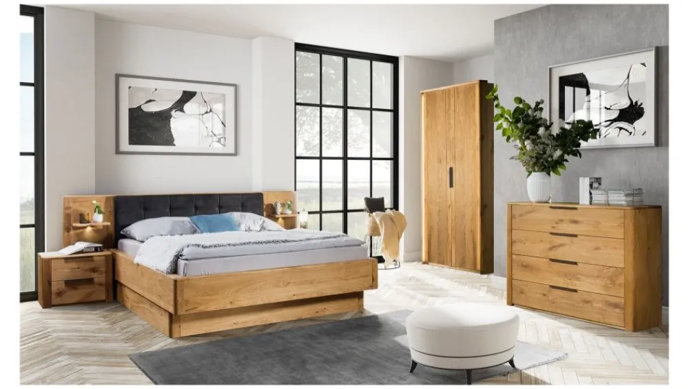 Jedną z propozycji jest tradycyjna komoda z czterema szufladami. Komoda zaprojektowana została jako element sypialni, ale będzie też doskonałym elementem wyposażenia salonu czy przedpokoju. W skład kolekcji wchodzą łóżka, komody, szafki nocne oraz szafy, dzięki temu możemy stworzyć wymarzony zestaw mebli do sypialni.