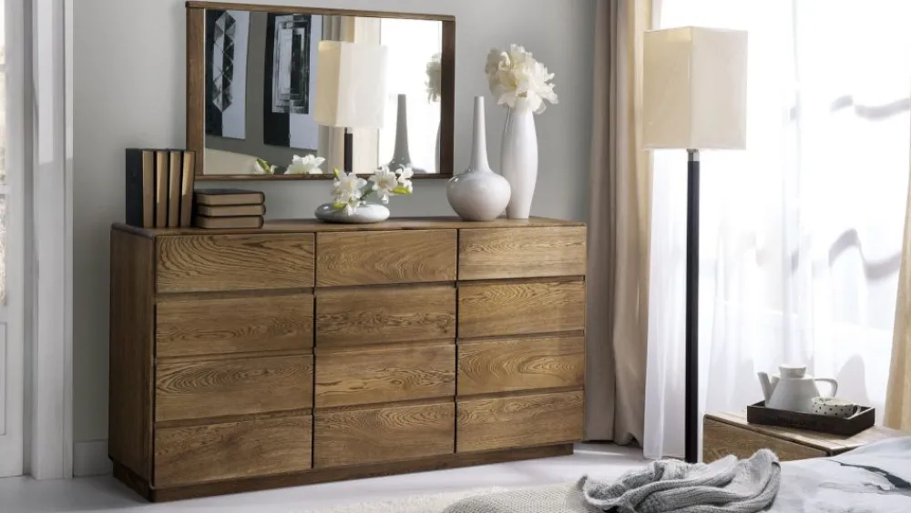 Takie właśnie są meble wykonane z naturalnego drewna. Fronty kolekcji Atlanta są wykonane z litego drewna, natomiast półki, korpus, przegrody oraz wieniec dolny wykonane są z płyty fornirowanej okleiną dębową, sęczną. Powierzchnia mebli wykończona olejem oraz woskiem, szczotkowana, dzięki temu każdy mebel z tej kolekcji to unikalna konstrukcja. Dęby są jak ludzie – każdy ma inny charakter i inne wnętrze. Drewno możemy porównać do książki w której zapisana jest cała jego historia. W sękach, słojach i przebarwieniach możemy zaobserwować promienie słońca, krople deszczu czy powiew wiatru. Dzięki wyjątkowej selekcji oraz niepowtarzalności materiału możemy poczuć się wyjątkowo jako posiadacze mebli Dekort. Różnorodność świadczy o naturalnym pochodzeniu drewna, czasem będą widoczne mocniejsze sęki, czasem bardziej widoczne usłojenie. Cechy charakterystyczne dla drewna są zaletą, nie wadą. Meble przeznaczone dla Klientów, którzy potrafią docenić piękno natury, bez zbędnych retuszy. Dla tych, którzy nie uznają naturalnych cech jako wady.