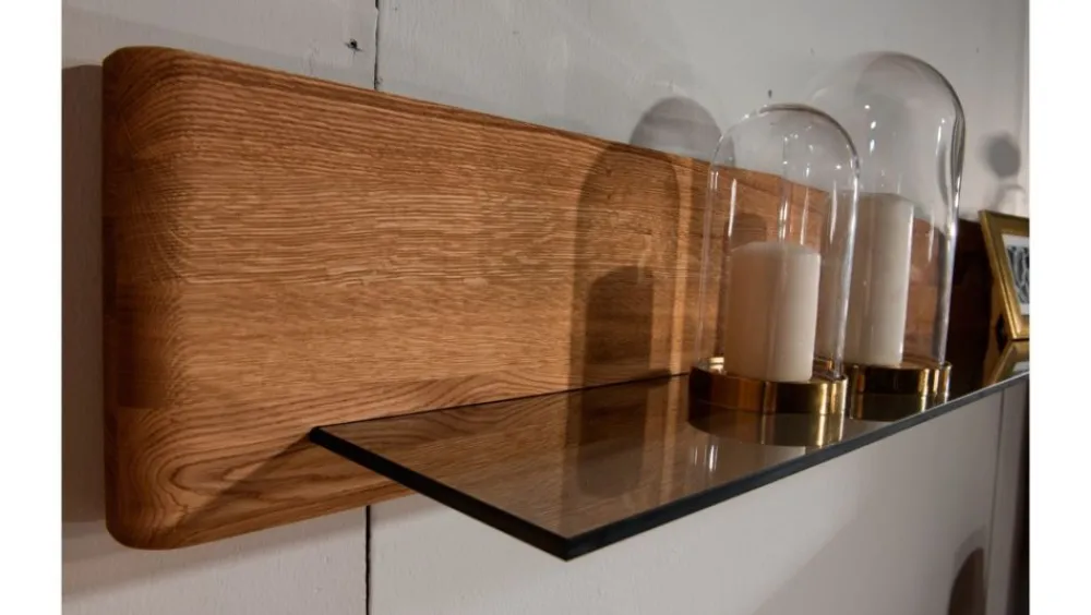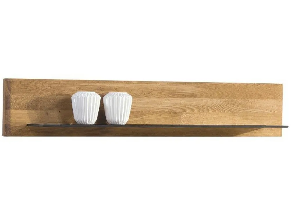 Półka wisząca do perfekcyjne uzupełnienie kolekcji, dzięki zawieszeniu w dowolnym, możliwym miejscu możemy w estetyczny sposób zapełnić wolną przestrzeń nad lub pomiędzy meblami. Półka wykonana z połączenia litego drewna i szkła hartowanego. Dostępna również w wersji dłuższej. W skład kolekcji wchodzą witryny, komody, szafki RTV oraz krzesła, dzięki temu możemy stworzyć wymarzony zestaw mebli zarówno do salonu, jak i do jadalni.