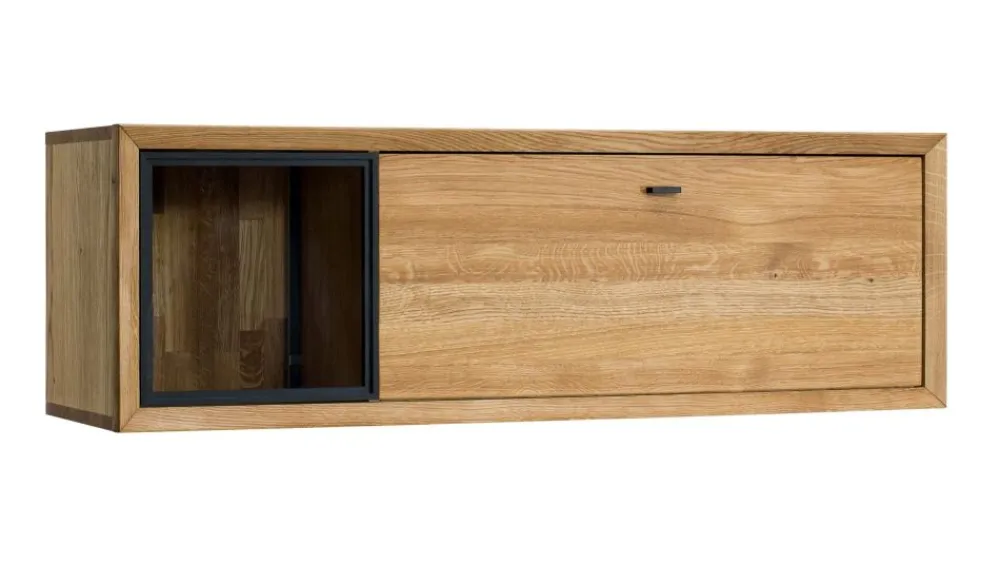 Jedną z propozycji kolekcji Vigo jest częściowo otwarta szafka wisząca. Część szafki wyposażono w praktyczną klapę, za którą możemy przechowywać osobiste drobiazgi. Pozostała część jest otwarta, co pozawala na wyeksponowanie drobnych dekoracji lub pamiątek rodzinnych. Szafka, jako element kolekcji, będzie stanowić doskonałe uzupełnienie aranżacji wnętrza. W ofercie dostępna jest również prosta półka wisząca oraz otwarty regał stojący. W skład kolekcji wchodzą witryny, komody, szafka RTV, regały oraz stolik, dzięki temu możemy stworzyć wymarzony zestaw mebli zarówno do salonu, jak i jadalni.
