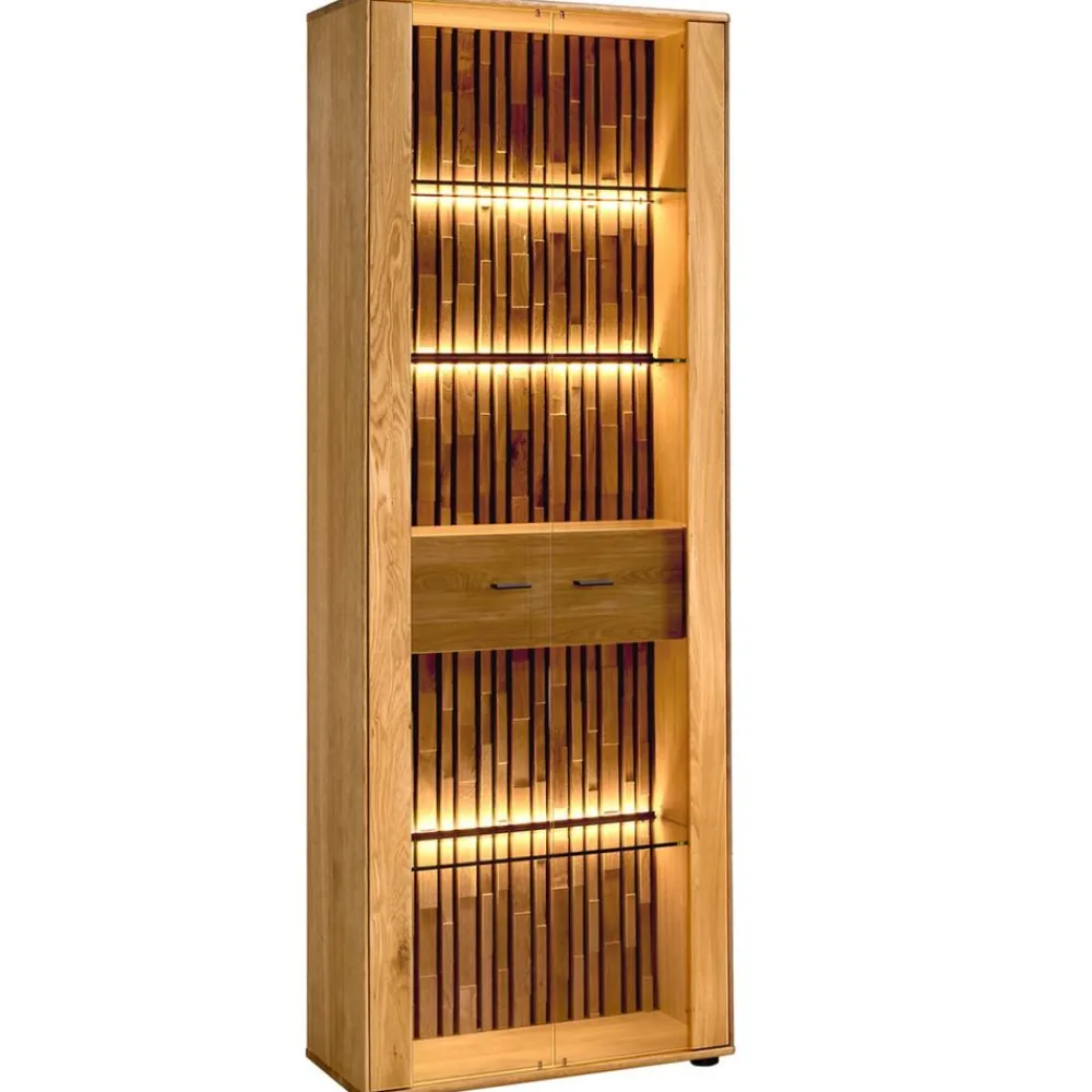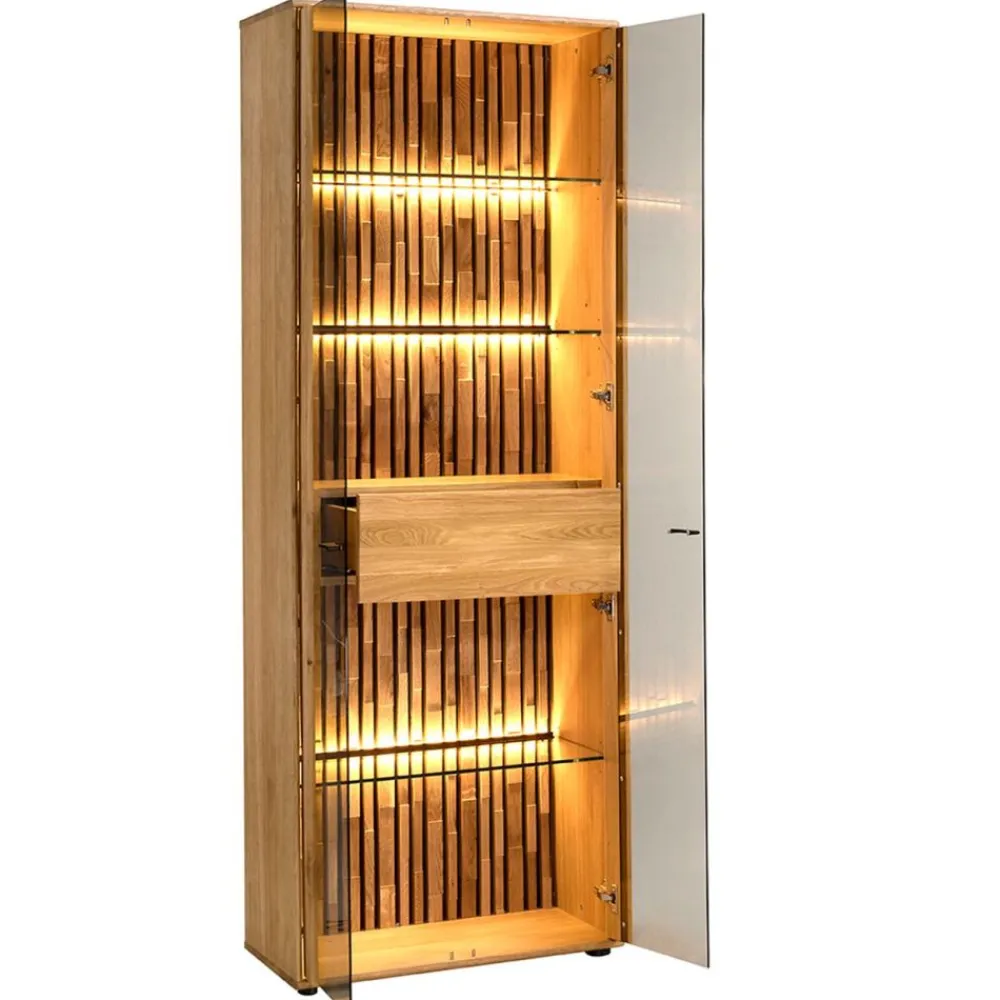 Przeszklona witryna dębowa LED – lekkość i ponadczasowy design