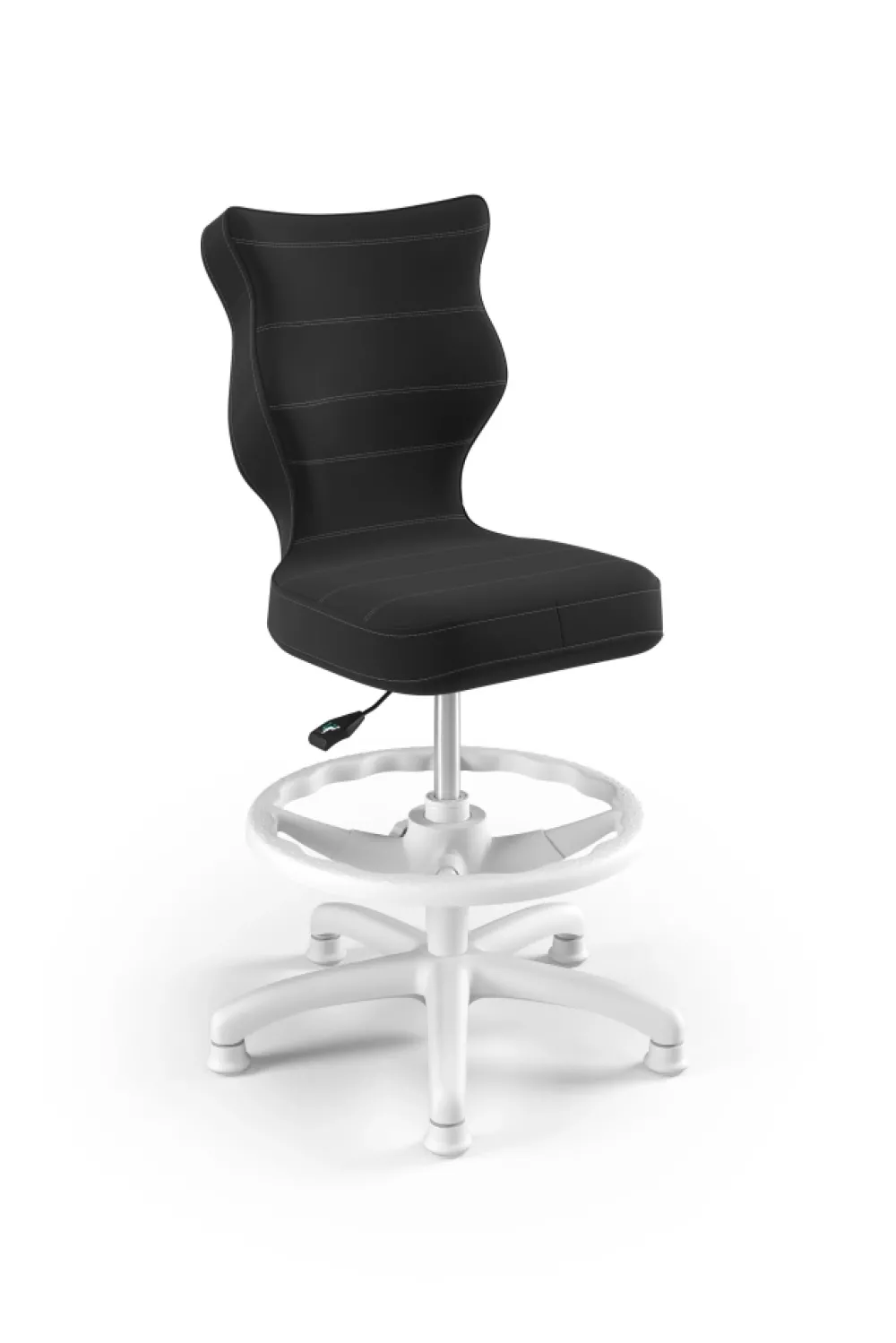 Petit to kolekcja krzeseł dziecięco-młodzieżowych o ergonomicznym kształcie siedziska dostosowanym do wzrostu użytkownika. Petit występuje w sześciu rodzajach tkanin, do których został przypisany określony sposób wykończenia krzesła. Model dostępny w czterech rozmiarach i w trzech kolorach komponentów – czarnym, białym oraz szarym. Podstawę krzesła wykonano z tworzywa sztucznego i włókna szklanego. W zestawie znajdują się kółka miękkie umożliwiające ruch krzesła zarówno po powierzchniach twardych jak i wykładzinach. Produkt zaprojektowany i wyprodukowany w Polsce. Wzrost użytkownika, rozmiar 3: 119 – 142 cm Wzrost użytkownika, rozmiar 4: 133 – 159 cm Wzrost użytkownika, rozmiar 5: 146 – 176,5 cm Wzrost użytkownika, rozmiar 6: 159 – 188 cm Wysokość blatu biurka Rozmiar 3-4 – wysokość biurka 63 – 69 cm Rozmiar 5-6 – wysokość biurka 70 – 82 cm Siedzisko: Ergonomiczne siedzisko wykonane z tworzywa sztucznego Mechanizm: Blacha siedziska z dźwignią prostą wykonana ze stali Osłonka: Teleskopowa osłonka na podnośnik gazowy wykonana z tworzywa sztucznego Wersje kolorystyczne: biała Baza: Podstawa pięcioramienna wykonana z tworzywa sztucznego i włókna szklanego Wersje kolorystyczne: biała Kółka: Kółka miękkie wykonane z tworzywa sztucznego, średnica 50 mm, średnica trzpienia fi 11 Wersje kolorystyczne: biała