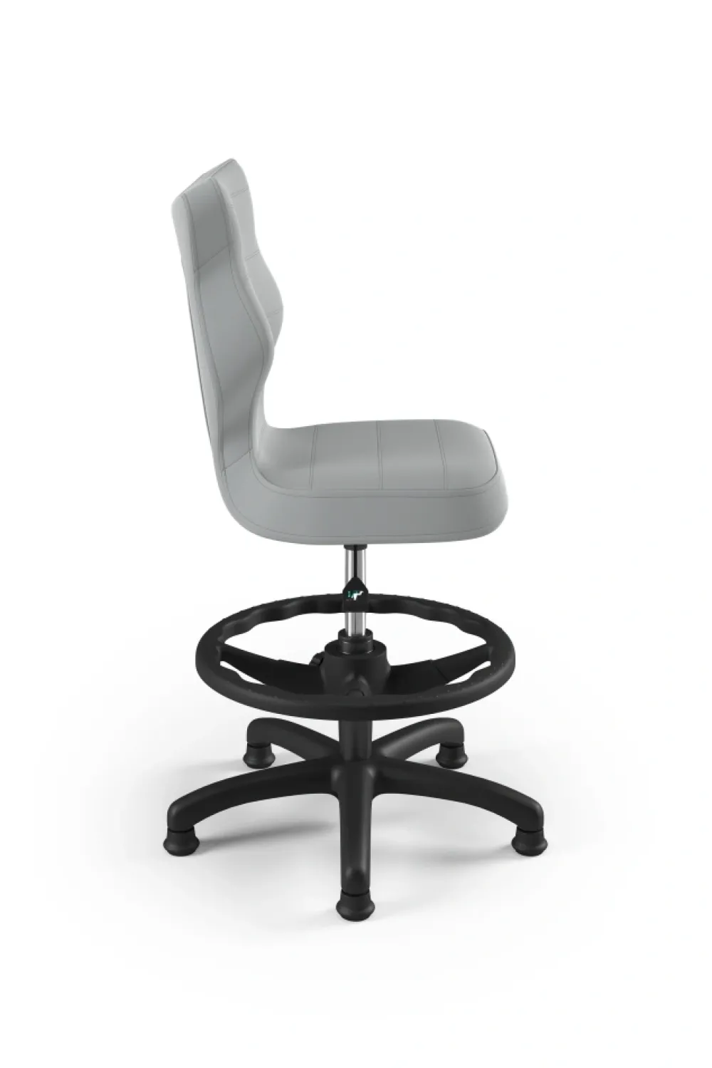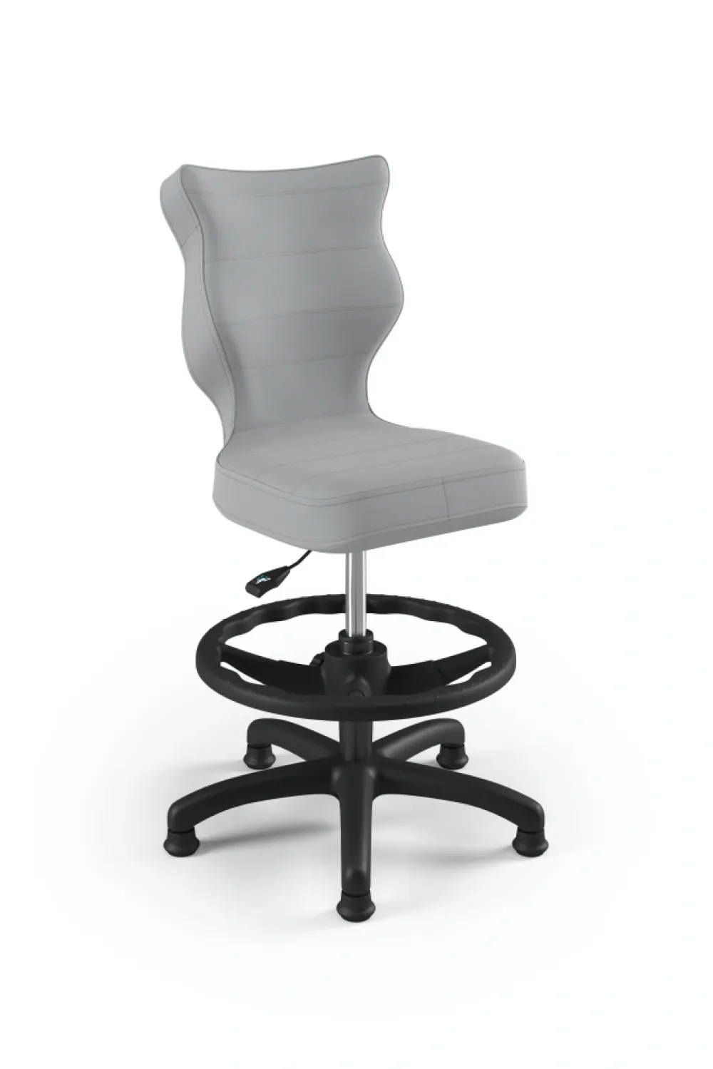 Petit to kolekcja krzeseł dziecięco-młodzieżowych o ergonomicznym kształcie siedziska dostosowanym do wzrostu użytkownika. Petit występuje w sześciu rodzajach tkanin, do których został przypisany określony sposób wykończenia krzesła. Model dostępny w czterech rozmiarach i w trzech kolorach komponentów – czarnym, białym oraz szarym. Podstawę krzesła wykonano z tworzywa sztucznego i włókna szklanego. W zestawie znajdują się kółka miękkie umożliwiające ruch krzesła zarówno po powierzchniach twardych jak i wykładzinach. Produkt zaprojektowany i wyprodukowany w Polsce. Wzrost użytkownika, rozmiar 3: 119 – 142 cm Wzrost użytkownika, rozmiar 4: 133 – 159 cm Wzrost użytkownika, rozmiar 5: 146 – 176,5 cm Wzrost użytkownika, rozmiar 6: 159 – 188 cm Wysokość blatu biurka Rozmiar 3-4 – wysokość biurka 63 – 69 cm Rozmiar 5-6 – wysokość biurka 70 – 82 cm Siedzisko: Ergonomiczne siedzisko wykonane z tworzywa sztucznego Mechanizm: Blacha siedziska z dźwignią prostą wykonana ze stali Kolumna: Podnośnik gazowy wykonany ze stali i tworzywa sztucznego Wersja kolorystyczna: czarna Osłonka: Teleskopowa osłonka na podnośnik gazowy wykonana z tworzywa sztucznego Wersje kolorystyczne: czarna Baza: Podstawa pięcioramienna wykonana z tworzywa sztucznego i włókna szklanego Wersje kolorystyczne: czarna Kółka: Kółka miękkie wykonane z tworzywa sztucznego, średnica 50 mm, średnica trzpienia fi 11 Wersje kolorystyczne: czarna