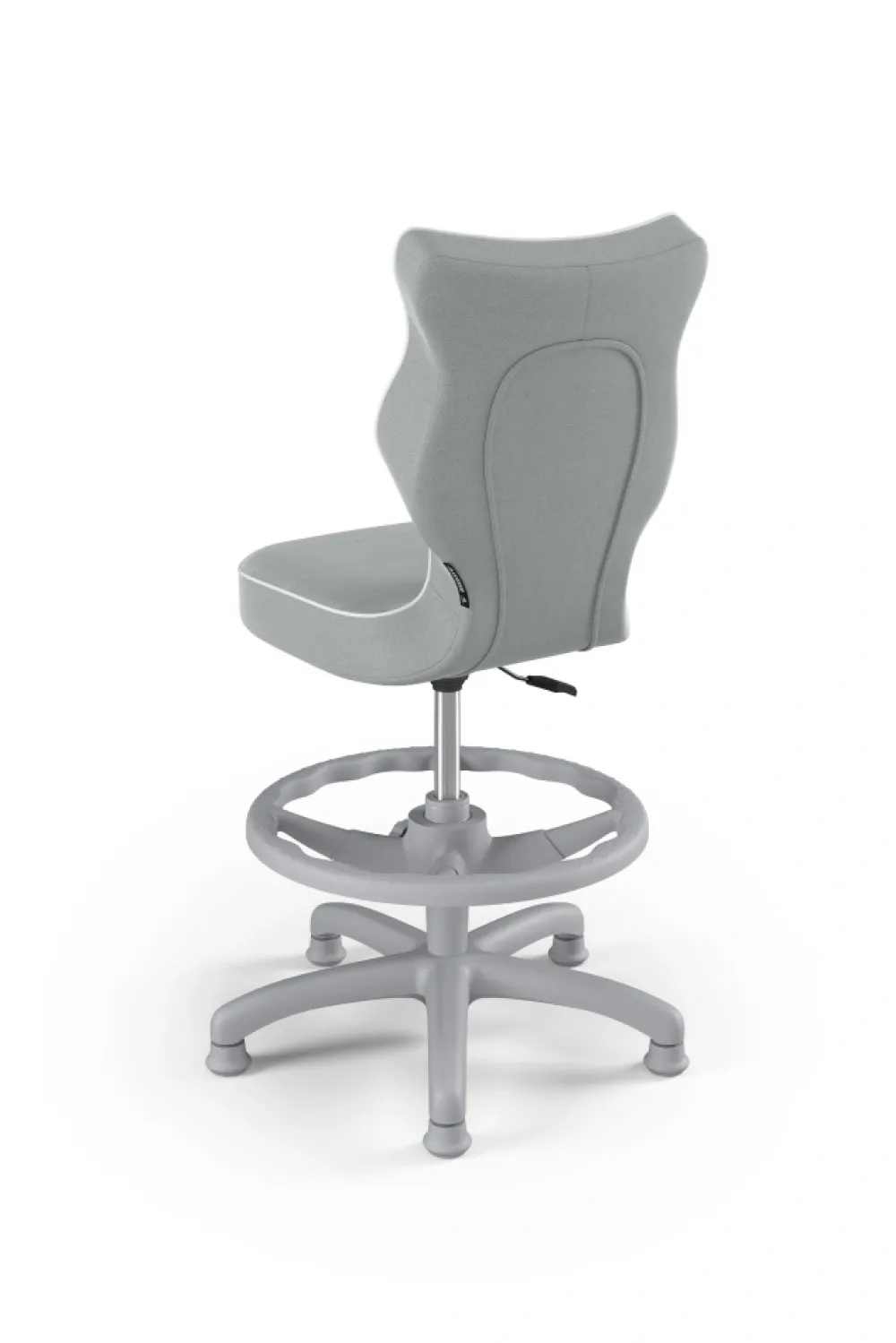 Petit to kolekcja krzeseł dziecięco-młodzieżowych o ergonomicznym kształcie siedziska dostosowanym do wzrostu użytkownika. Petit występuje w sześciu rodzajach tkanin, do których został przypisany określony sposób wykończenia krzesła. Model dostępny w czterech rozmiarach i w trzech kolorach komponentów – czarnym, białym oraz szarym. Podstawę krzesła wykonano z tworzywa sztucznego i włókna szklanego. W zestawie znajdują się kółka miękkie umożliwiające ruch krzesła zarówno po powierzchniach twardych jak i wykładzinach. Produkt zaprojektowany i wyprodukowany w Polsce. Wzrost użytkownika, rozmiar 3: 119 – 142 cm Wzrost użytkownika, rozmiar 4: 133 – 159 cm Wzrost użytkownika, rozmiar 5: 146 – 176,5 cm Wzrost użytkownika, rozmiar 6: 159 – 188 cm Wysokość blatu biurka Rozmiar 3-4 – wysokość biurka 63 – 69 cm Rozmiar 5-6 – wysokość biurka 70 – 82 cm Siedzisko: Ergonomiczne siedzisko wykonane z tworzywa sztucznego Mechanizm: Blacha siedziska z dźwignią prostą wykonana ze stali Osłonka: Teleskopowa osłonka na podnośnik gazowy wykonana z tworzywa sztucznego Wersje kolorystyczne: szara Baza: Podstawa pięcioramienna wykonana z tworzywa sztucznego i włókna szklanego Wersje kolorystyczne: szara Kółka: Kółka miękkie wykonane z tworzywa sztucznego, średnica 50 mm, średnica trzpienia fi 11 Wersje kolorystyczne: szara