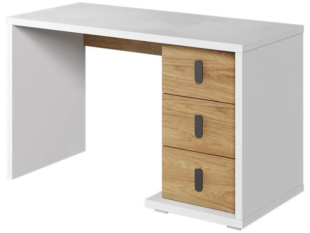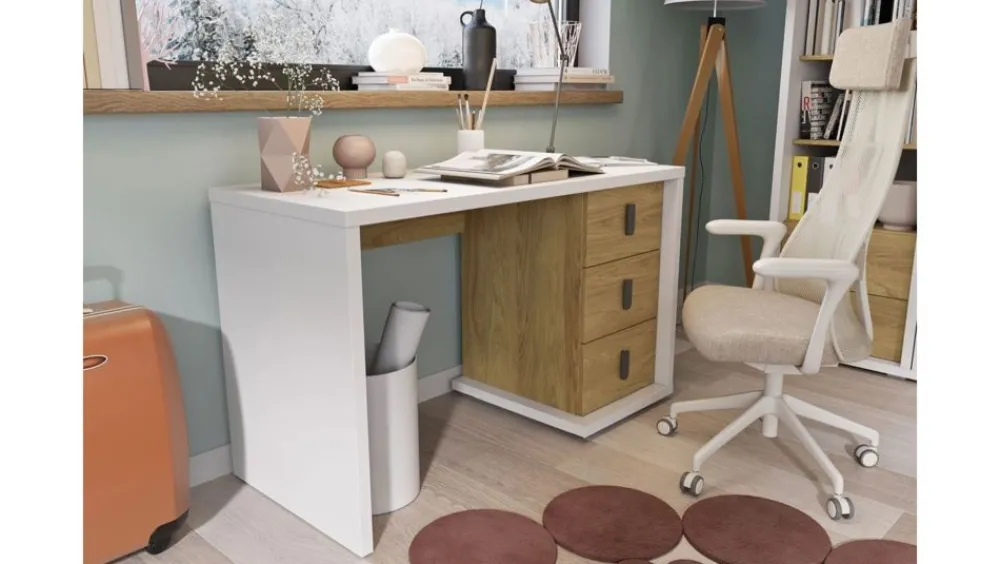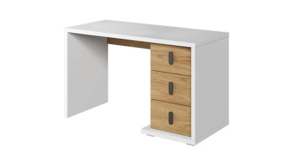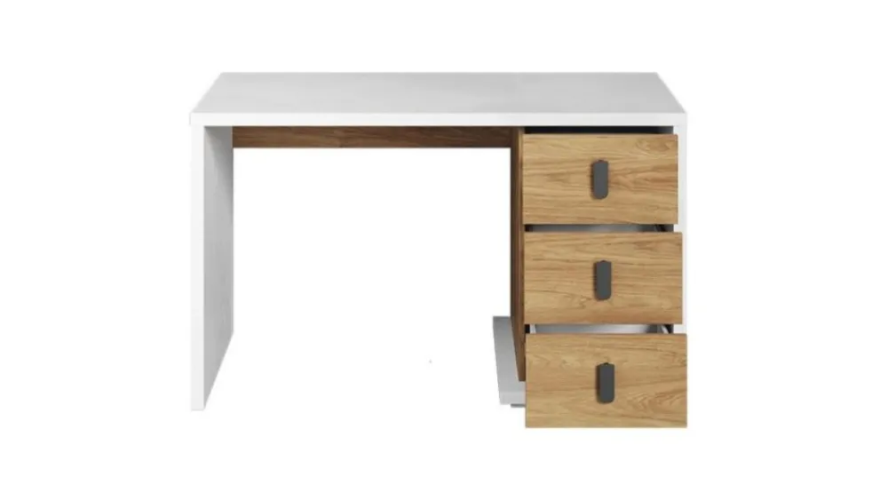 Biurko Simi posiada ergonomicznej wielkości blat, który zapewnia dużą ilość miejsca do wygodnej nauki. W trzech pojemnych i łatwo dostępnych szufladach zmieścisz wszystko, co lubisz mieć pod ręką.