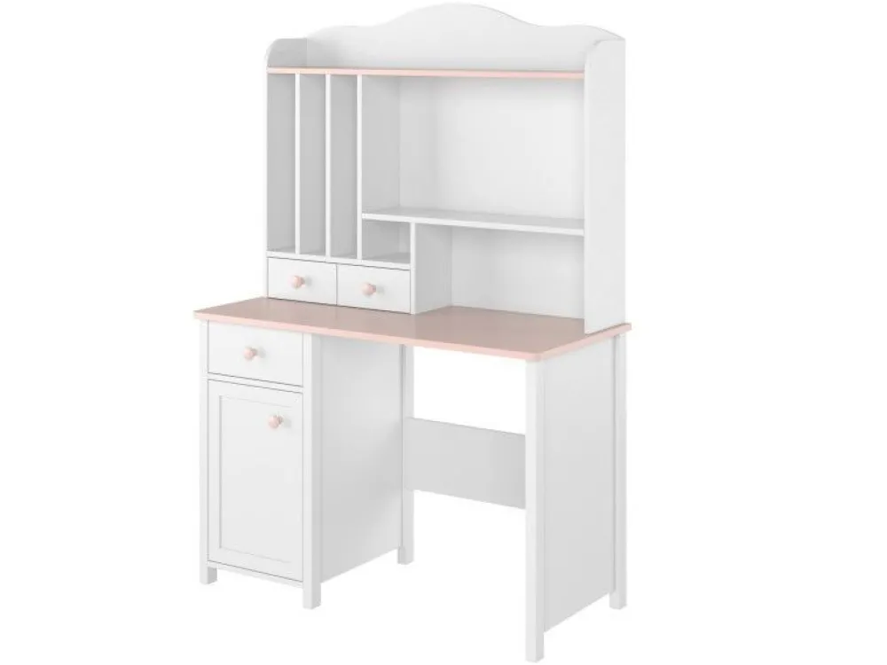 Bardzo ciekawą propozycją kolekcji jest zestaw – Biurko + Nadstawka. Niezwykle funkcjonalna propozycja, która dzięki połączeniu nadaje zupełnie zupełnie inny wymiar – biurko nie wygląda jak zwykły mebelek tego typu. Zestaw możemy traktować jak swojego rodzaju sekretarzyk z dodatkowym miejscem na przybory i dodatki. Dostępne jest również połączenie biurka z nadstawką z lustrem – wtedy tworzy się pierwsza toaletka małej księżniczki.
