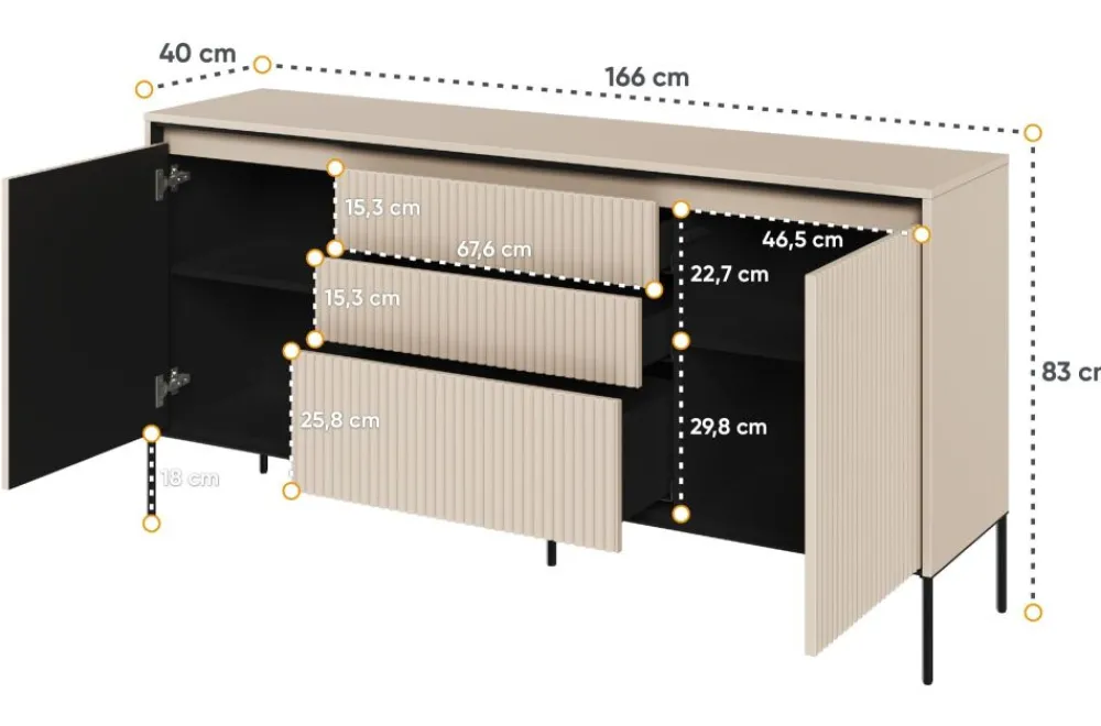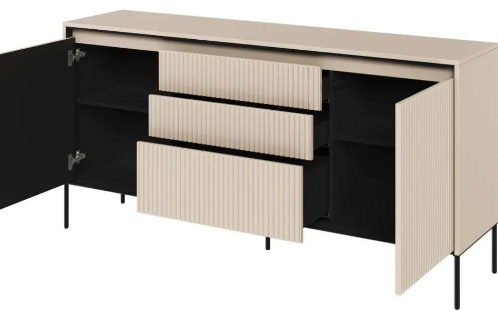 Kolekcja TREND została wykonana z wysokiej jakości materiałów, gwarantujących trwałość i wytrzymałość mebli na wiele lat użytkowania. Ta komoda oferuje również wiele praktycznych rozwiązań. Szuflady doskonale nadają się do przechowywania różnych przedmiotów, takich jak ubrania, bielizna czy akcesoria. Dzięki nim wszystko będzie dobrze zorganizowane i łatwo dostępne. Ponadto, szeroki blat komody może służyć jako miejsce do eksponowania ozdób lub innych dekoracji, dodając jeszcze więcej uroku Twojemu wnętrzu. Jeżeli poszukujesz komody z ryflowanymi frontami i szufladami, która łączy styl z praktycznością, to kolekcja TREND jest idealna właśnie dla Ciebie!