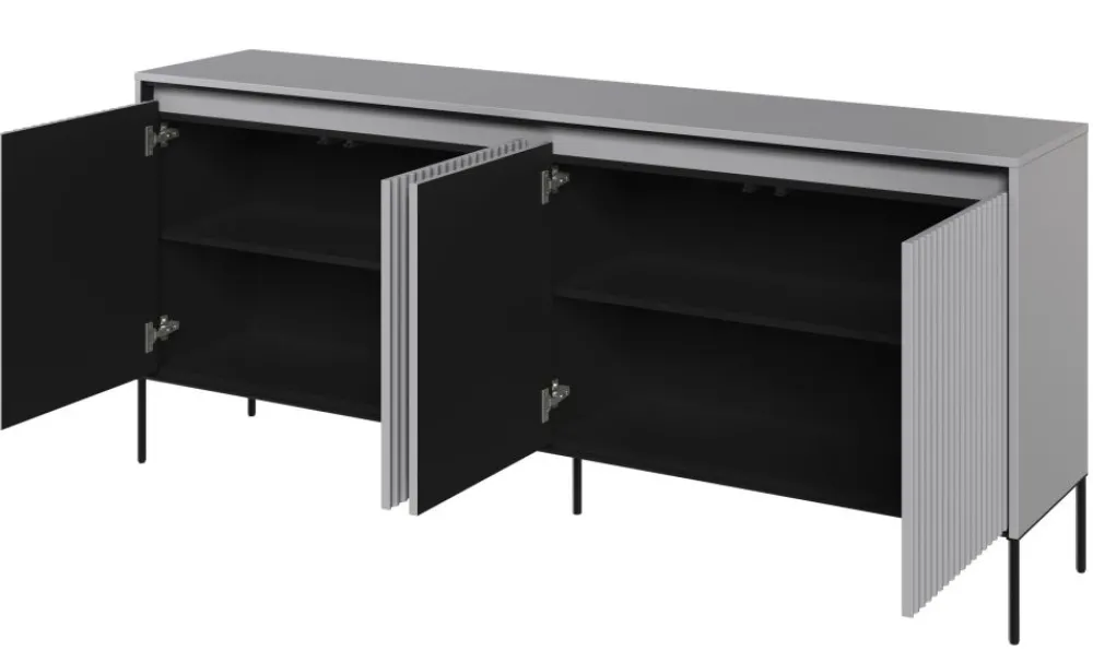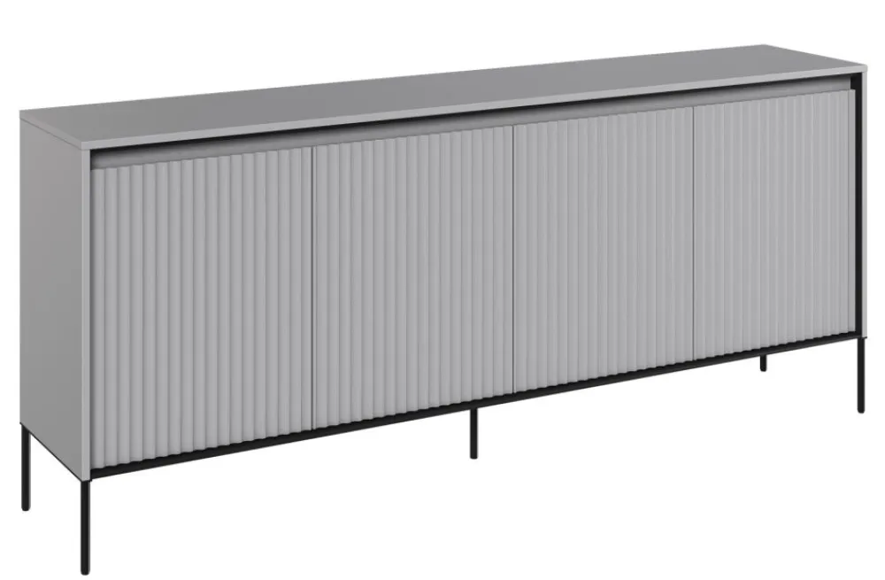Komoda TR-04 została wykonana z wysokiej jakości materiałów, co zapewnia trwałość na lata. Ryflowane fronty zostały dodatkowo podkreślone przez dołączone w komplecie oświetlenie LED. Odkryj, jak wiele korzyści możesz czerpać z tego funkcjonalnego i designerskiego mebla. Uzupełnij swoją przestrzeń tym unikalnym meblem, który stanie się centralnym punktem w Twoim salonie. Nie tylko wzbogaci przestrzeń, lecz także nadaje jej wyjątkowy charakter.