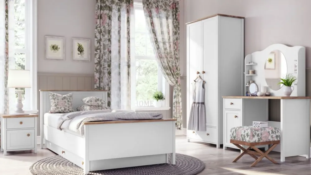 Kolejną propozycją jest klasyczna komoda z dużą szufladą. Mebelek idealny jako organizer ubrań, przydatny dodatek każdego pokoju.