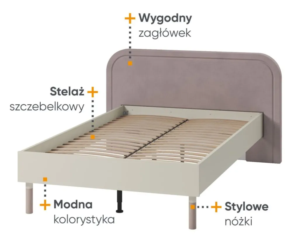 Oto łóżko młodzieżowe, które zaspokoi najwyższe oczekiwania zarówno w kwestii komfortu, jak i stylu. Przedstawiamy szerokie łóżko ze stelażem i tapicerowanym zagłówkiem, dostępne w najmodniejszym zestawieniu kolorów kaszmir i truflowy. To niezwykłe łóżko o powierzchni spania 120×200 cm to wybór, który rewolucjonizuje przestrzeń sypialni Twojego nastolatka!