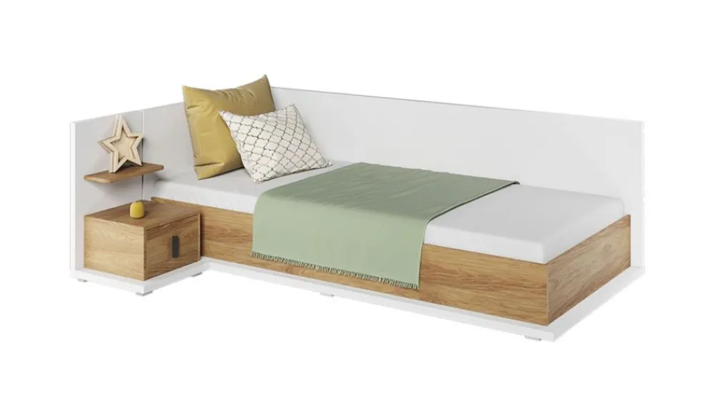 Łóżko Simi posiada duży pojemnik na pościel oraz materac bonellowy w cenie. Wysokość materaca wynosi 18 cm. Górna i boczna część mebla zostały zabezpieczone dodatkową blendą, dzięki której łóżko może pełnić funkcję kanapy. Wystarczy uzupełnić je o poduszki aby uzyskać wygodne oparcie!