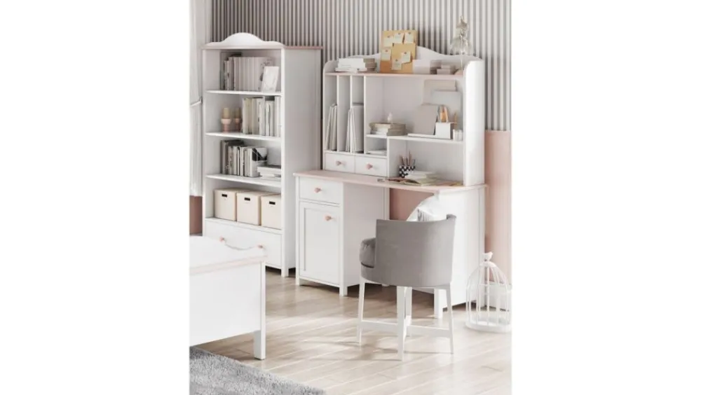 Kolekcja mebli Luna to klasyczna propozycja charakteryzująca się połączeniem bieli z subtelnym, pudrowym różem. Ponadczasowa stylistyka mebli gwarantuje ich użytkowanie od lat dziecięcych do szkolnych. Ogólny styl, różnorodność i funkcjonalność elementów kolekcji zachwyca małe użytkowniczki oraz umożliwia im poczucie się jak prawdziwe księżniczki we własnym pokoju. Największym atutem mebli systemowych jest możliwość tworzenia dowolnych kompletów z gamy dostępnych elementów, dzięki temu jesteśmy w stanie dopasować zestaw adekwatnie do wielkości pokoju oraz wymagań i potrzeb dziecka.