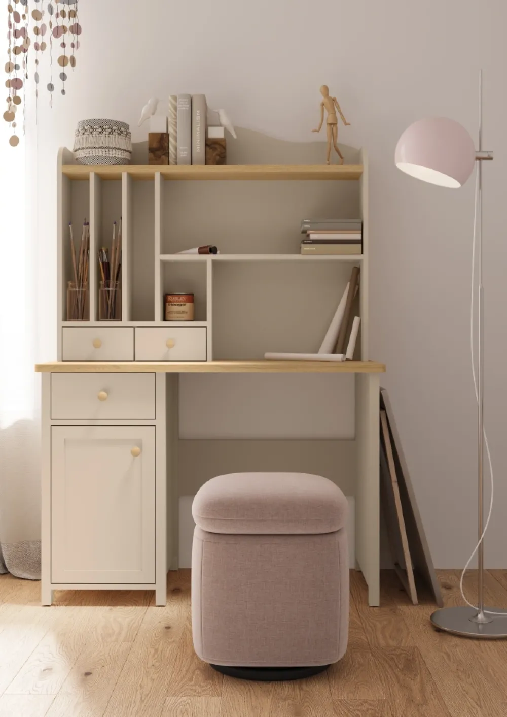 Nadstawka do biurka dziecięcego Lenart Story SO-04 to praktyczne rozwiązanie, które pomaga w utrzymaniu porządku i organizacji w pokoju dziecka. Dzięki dodatkowej przestrzeni nad biurkiem zyskujemy miejsce na książki, zeszyty i drobiazgi. Subtelna kolorystyka w odcieniu piaskowego beżu i dębu vincenza bielona sprawia, że mebel pasuje do nowoczesnych i klasycznych aranżacji. Nadstawka nad biurko została zaprojektowana w formie sekretarzyka, co czyni ją eleganckim i praktycznym elementem wyposażenia. To mebel, który sprawdzi się w codziennej nauce, zabawie i organizacji przestrzeni dziecka. Solidne wykonanie z laminowanej płyty zapewnia trwałość przez wiele lat. To doskonały wybór dla rodziców szukających estetyki i funkcjonalności w jednym.