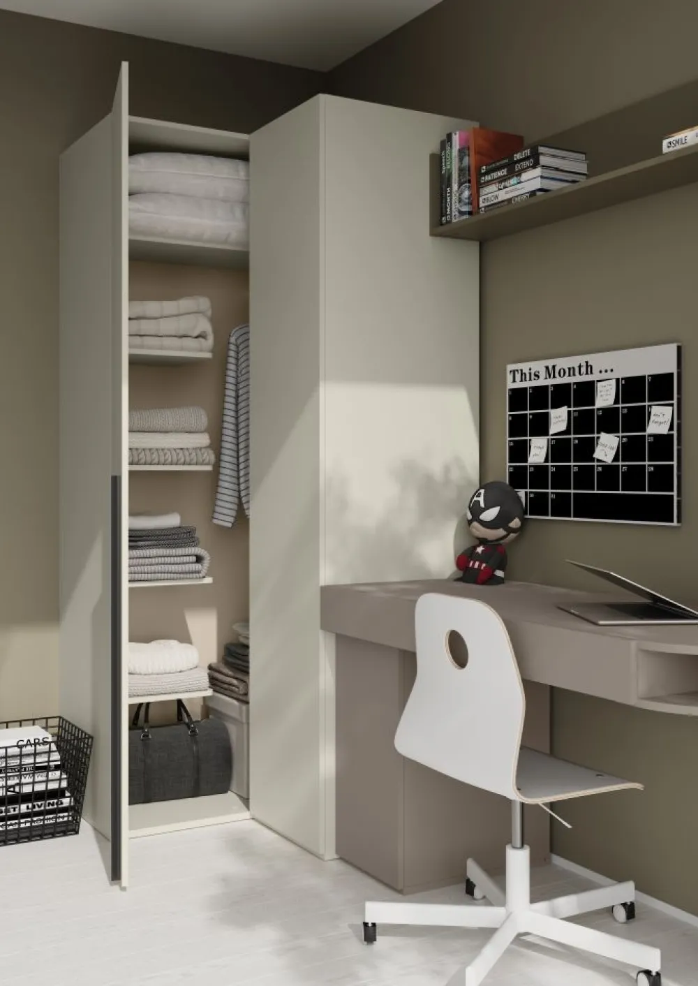 Półka ścienna WO-10 to doskonała półka wisząca do pokoju młodzieżowego, która pozwala w pełni wykorzystać przestrzeń ścienną. Dzięki niej zyskujesz miejsce na książki, dekoracje oraz przybory szkolne, bez zabierania powierzchni roboczej. To idealne rozwiązanie dla nastolatków, którzy potrzebują uporządkowanej i stylowej przestrzeni do nauki. Jej nowoczesny design i kolor eukaliptus świetnie komponują się z aktualnymi trendami. Półka do pokoju nastolatka z serii Woow jest estetyczna, lekka wizualnie i bardzo praktyczna. To również idealna półka do małego pokoju, która zwiększa funkcjonalność bez zajmowania dodatkowego miejsca.