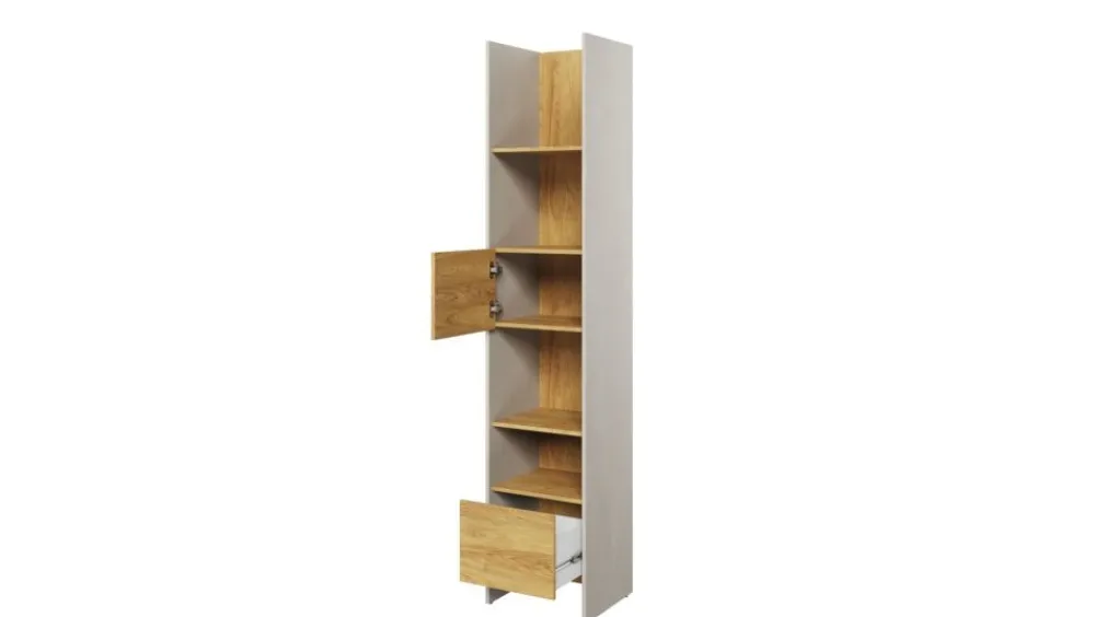 Regały są meblami, które zapewniają świetny sposób na przechowywanie różnych rzeczy w pokoju nastolatków. Wykorzystując te meble ułatwisz sobie oraz użytkownikowi utrzymywanie porządku, ale również w ciekawy sposób eksponujesz pamiątki, dekoracje, książki oraz płyty z muzyką lub filmami. Regał TF-2, który zawiera szafkę i półki to niezwykle designerska propozycja dla tych osób, które lubią nieoczywiste połączenia otwartej i zamkniętej przestrzeni. Mebel w pokoju nastolatka nie tylko powinien być modny, ale co najważniejsze funkcjonalny. Kolekcja mebli Teen Flex została zaprojektowana z myślą o pokojach młodzieżowych i wyróżniają się możliwością łączenia brył w różne zestawy co daje szerokie pole manewru w kwestii aranżacji wnętrza.