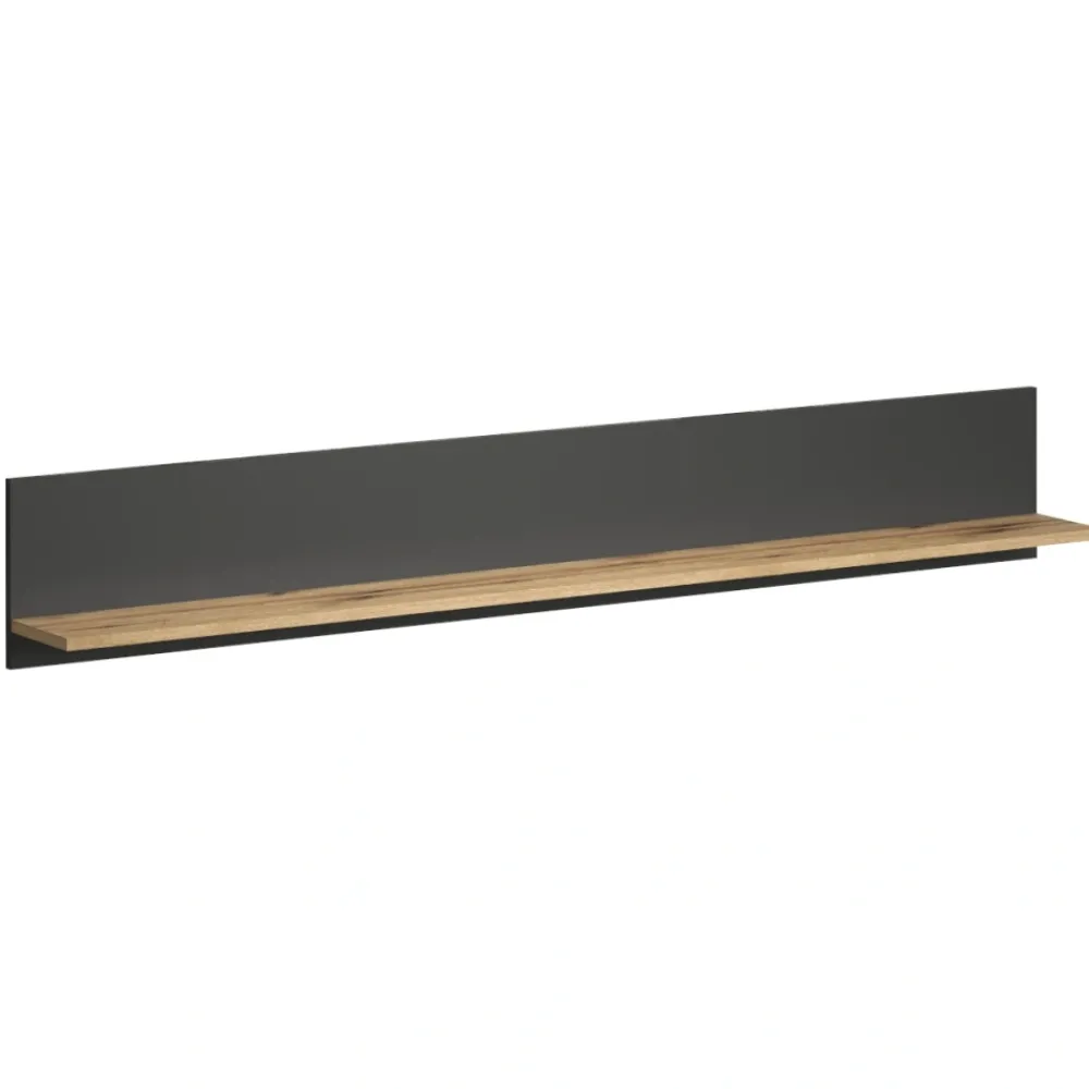 Półka Esteban o długości 150 cm to idealny sposób na wyeksponowanie dekoracji, książek i ulubionych dodatków w salonie, sypialni czy przedpokoju. Połączenie kolorów grafit oraz dąb evok nadaje wnętrzu elegancki, przytulny i nowoczesny charakter. Dzięki wymiarom 150 × 25 × 17,6 cm półka jest na tyle szeroka, by pomieścić praktyczne i dekoracyjne elementy, a jednocześnie nie obciąża optycznie ściany. Laminowana płyta meblowa zapewnia trwałość, odporność na zarysowania oraz łatwość pielęgnacji. To element wyposażenia, który świetnie podkreśla styl nowoczesnych, minimalistycznych i skandynawskich aranżacji.