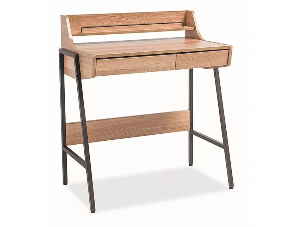 Biurko, blat: MDF, kolor: dąb, stelaż: metal, kolor: ciemny brąz. Wysokość szuflad 6cm.