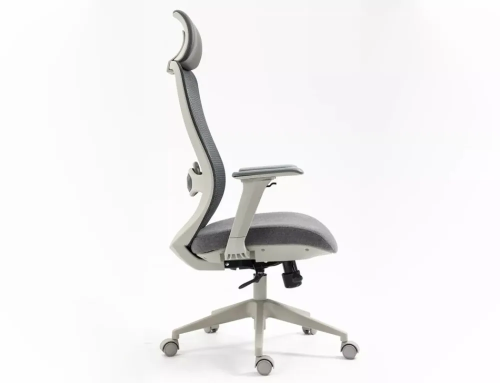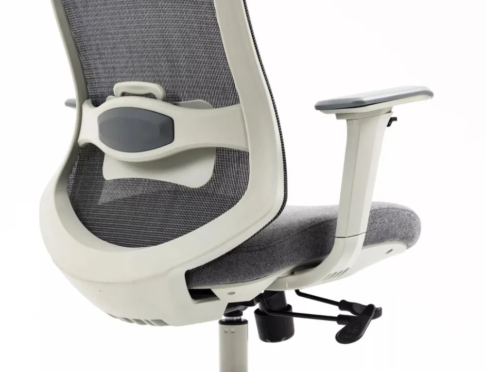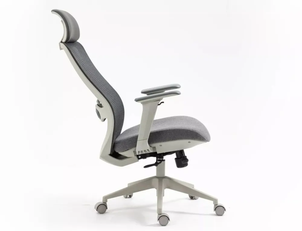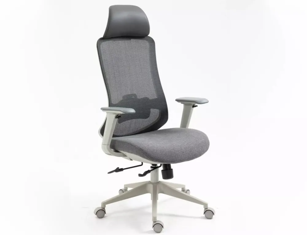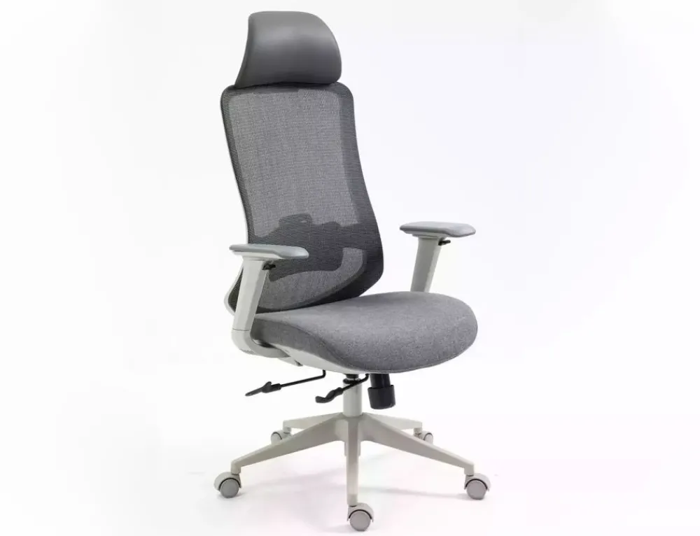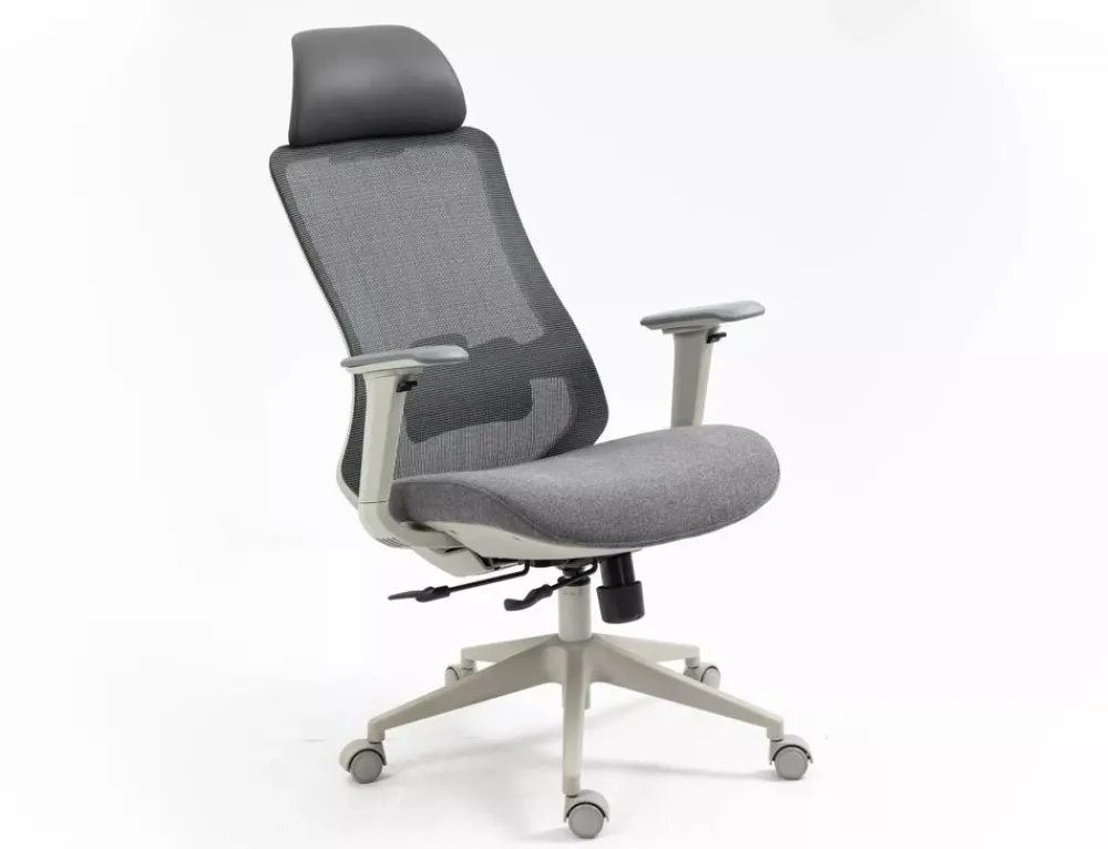 Fotel obrotowy ergonomiczny, spełnia wymogi BHP dotyczące krzeseł biurowych zgodnie z rozporządzeniem Dz. U. poz.2367. Model posiada pozytywną ocenę fizjologiczno-ergonomiczną wydaną przez Instytut Medycyny Pracy (szczegóły w zakładce „PLIKI DO POBRANIA”). Tkanina / skóra syntetyczna / siatka, kolor: szary, stelaż tworzywo, kolor: szary, multiblock, kółka nylonowe, ruchome podłokietniki 4D, regulowany zagłówek oraz odcinek lędźwiowy, regulowana głębokość siedziska, max obciążenie 136kg.