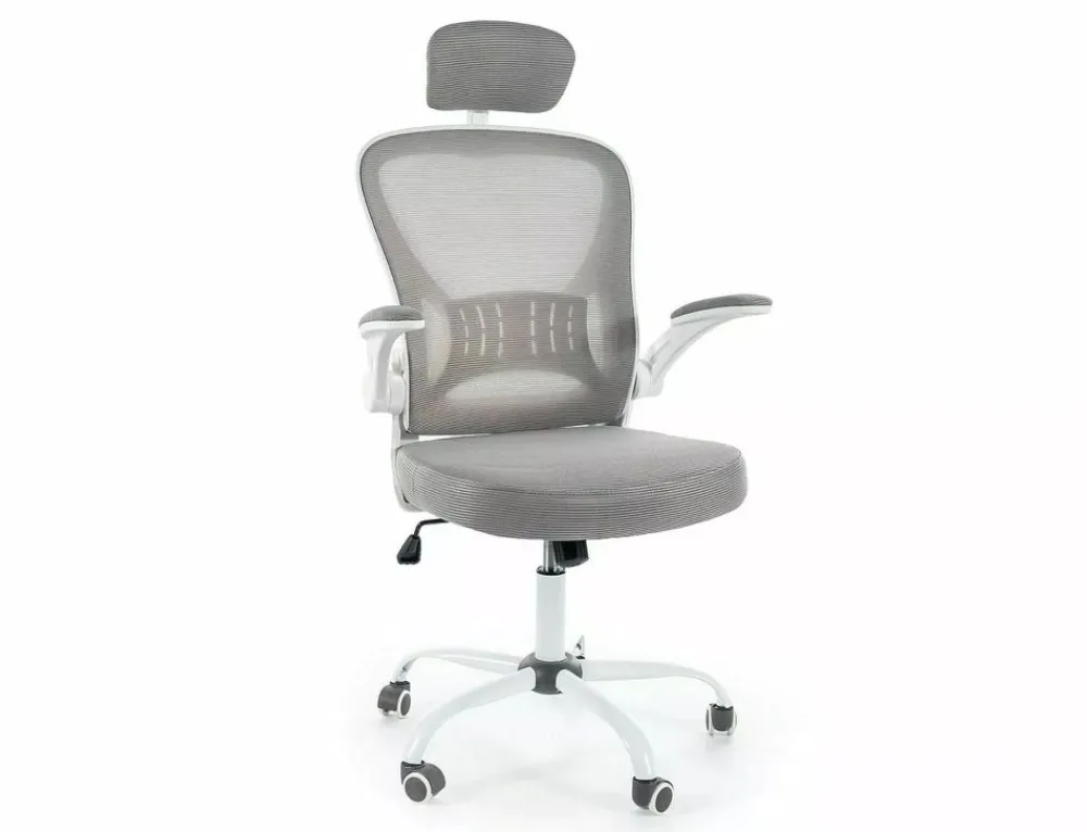 Fotel obrotowy, tkanina membranowa + siatka, kolor szary / biały. Mechanizm TILT, regulowany zagłówek i podłokietniki.