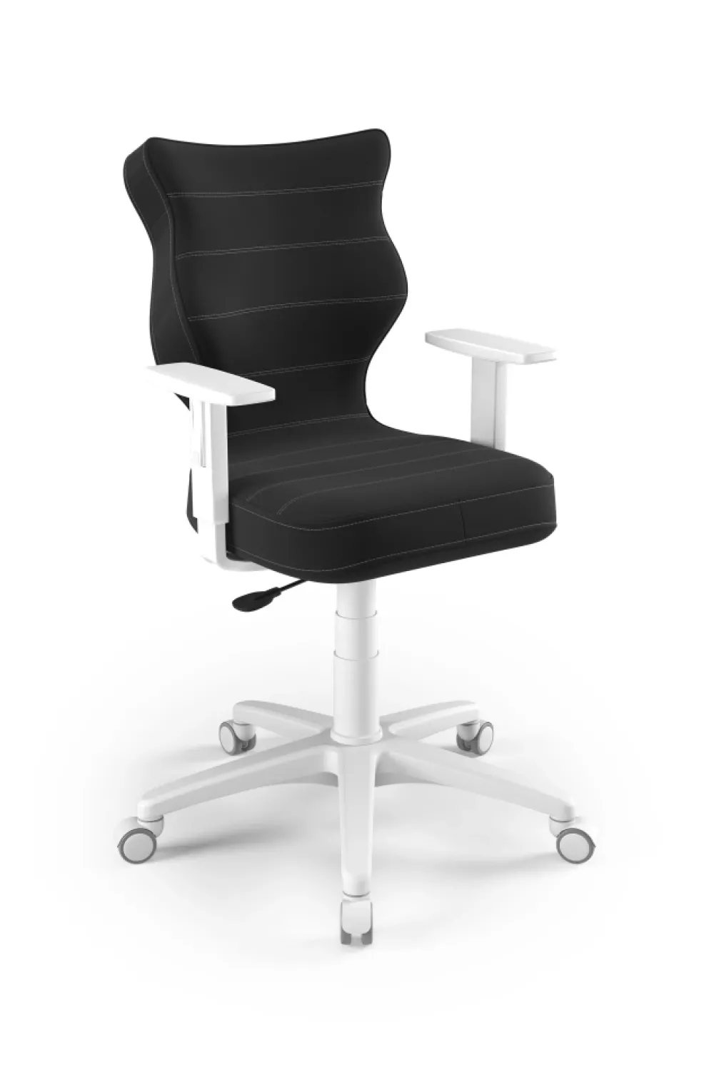 Duo to linia Dobrych Krzeseł posiadająca parametry ergonomiczne, które odpowiadają za zachowanie prawidłowej postawy siedzącej. Duo występuje w sześciu rodzajach tkanin i trzech kolorach komponentów – czarnym, białym oraz szarym. Wykończenie krzesła oraz szeroki wybór koloru tapicerki sprawia, że model pasuje do każdego wnętrza. Duo dostępne w rozmiarze 5 i 6 posiada regulowane podłokietniki umożliwiające wsunięcie krzesła pod blat biurka. Podstawę krzesła wykonano z tworzywa sztucznego oraz włókna szklanego. W zestawie znajdują się kółka miękkie umożliwiające ruch krzesła zarówno po powierzchniach twardych jak i wykładzinach. Produkt zaprojektowany i wyprodukowany w Polsce. Wzrost użytkownika, rozmiar 5: 146 – 176,5 cm Wzrost użytkownika, rozmiar 6: 159 – 188 cm Wysokość blatu biurka Rozmiar 5-6 – wysokość biurka 70 – 82 cm Siedzisko: Ergonomiczne siedzisko wykonane z tworzywa sztucznego Podłokietniki: Podłokietniki regulowane wykonane z tworzywa sztucznego, twarde Wersje kolorystyczne: biała Mechanizm: Blacha siedziska z dźwignią prostą wykonaną ze stali Kolumna: Podnośnik gazowy wykonany ze stali i tworzywa sztucznego Wersje kolorystyczne: czarna Osłonka: Teleskopowa osłonka na podnośnik gazowy wykonana z tworzywa sztucznego Wersje kolorystyczne: biała Baza: Podstawa pięcioramienna wykonana z tworzywa sztucznego Wersje kolorystyczne: biała Kółka: Kółka miękkie wykonane z tworzywa sztucznego, średnica 50 mm, średnica trzpienia fi 11 Wersje kolorystyczne: biała