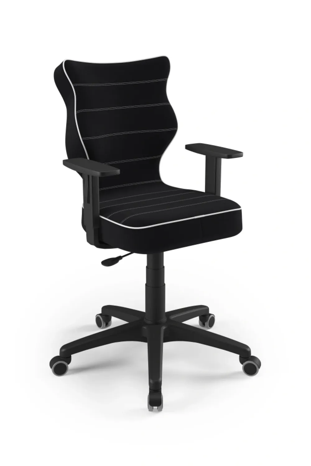 Duo to linia Dobrych Krzeseł posiadająca parametry ergonomiczne, które odpowiadają za zachowanie prawidłowej postawy siedzącej. Duo występuje w sześciu rodzajach tkanin i trzech kolorach komponentów – czarnym, białym oraz szarym. Wykończenie krzesła oraz szeroki wybór koloru tapicerki sprawia, że model pasuje do każdego wnętrza. Duo dostępne w rozmiarze 5 i 6 posiada regulowane podłokietniki umożliwiające wsunięcie krzesła pod blat biurka. Podstawę krzesła wykonano z tworzywa sztucznego oraz włókna szklanego. W zestawie znajdują się kółka miękkie umożliwiające ruch krzesła zarówno po powierzchniach twardych jak i wykładzinach. Produkt zaprojektowany i wyprodukowany w Polsce. Wzrost użytkownika, rozmiar 5: 146 – 176,5 cm Wzrost użytkownika, rozmiar 6: 159 – 188 cm Wysokość blatu biurka Rozmiar 5-6 – wysokość biurka 70 – 82 cm Siedzisko: Ergonomiczne siedzisko wykonane z tworzywa sztucznego Podłokietniki: Podłokietniki regulowane wykonane z tworzywa sztucznego, twarde Wersje kolorystyczne: czarna Mechanizm: Blacha siedziska z dźwignią prostą wykonaną ze stali Kolumna: Podnośnik gazowy wykonany ze stali i tworzywa sztucznego Wersje kolorystyczne: czarna Osłonka: Teleskopowa osłonka na podnośnik gazowy wykonana z tworzywa sztucznego Wersje kolorystyczne: czarna Baza: Podstawa pięcioramienna wykonana z tworzywa sztucznego Wersje kolorystyczne: czarna Kółka: Kółka miękkie wykonane z tworzywa sztucznego, średnica 50 mm, średnica trzpienia fi 11 Wersje kolorystyczne: czarna