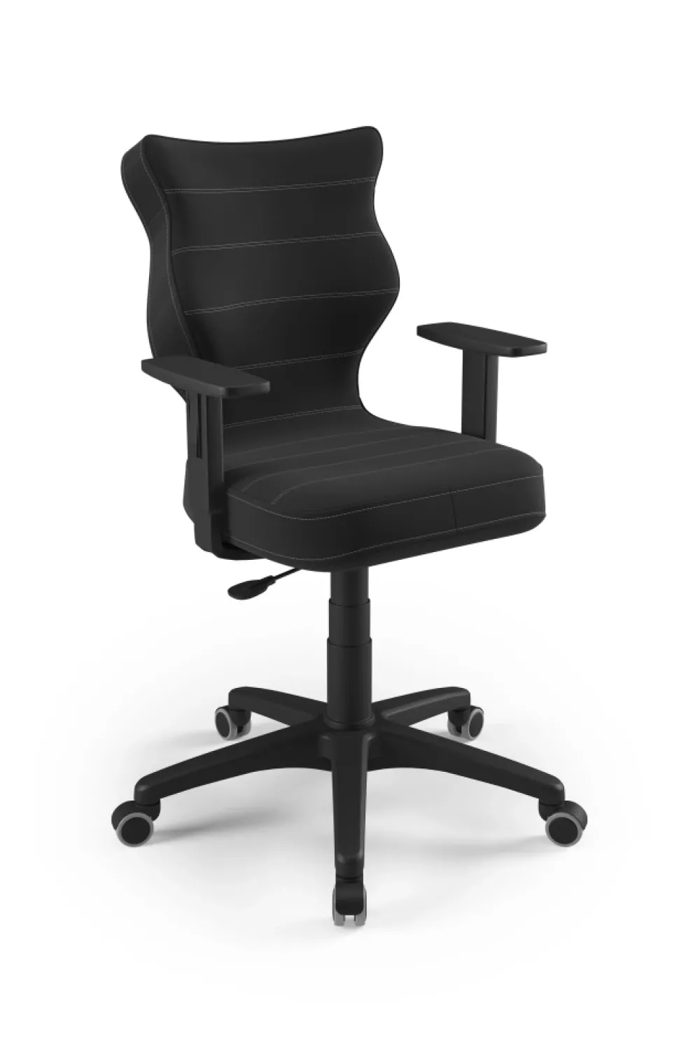 Duo to linia Dobrych Krzeseł posiadająca parametry ergonomiczne, które odpowiadają za zachowanie prawidłowej postawy siedzącej. Duo występuje w sześciu rodzajach tkanin i trzech kolorach komponentów – czarnym, białym oraz szarym. Wykończenie krzesła oraz szeroki wybór koloru tapicerki sprawia, że model pasuje do każdego wnętrza. Duo dostępne w rozmiarze 5 i 6 posiada regulowane podłokietniki umożliwiające wsunięcie krzesła pod blat biurka. Podstawę krzesła wykonano z tworzywa sztucznego oraz włókna szklanego. W zestawie znajdują się kółka miękkie umożliwiające ruch krzesła zarówno po powierzchniach twardych jak i wykładzinach. Produkt zaprojektowany i wyprodukowany w Polsce. Wzrost użytkownika, rozmiar 5: 146 – 176,5 cm Wzrost użytkownika, rozmiar 6: 159 – 188 cm Wysokość blatu biurka Rozmiar 5-6 – wysokość biurka 70 – 82 cm Siedzisko: Ergonomiczne siedzisko wykonane z tworzywa sztucznego Podłokietniki: Podłokietniki regulowane wykonane z tworzywa sztucznego, twarde Wersje kolorystyczne: czarna Mechanizm: Blacha siedziska z dźwignią prostą wykonaną ze stali Kolumna: Podnośnik gazowy wykonany ze stali i tworzywa sztucznego Wersje kolorystyczne: czarna Osłonka: Teleskopowa osłonka na podnośnik gazowy wykonana z tworzywa sztucznego Wersje kolorystyczne: czarna Baza: Podstawa pięcioramienna wykonana z tworzywa sztucznego Wersje kolorystyczne: czarna Kółka: Kółka miękkie wykonane z tworzywa sztucznego, średnica 50 mm, średnica trzpienia fi 11 Wersje kolorystyczne: czarna