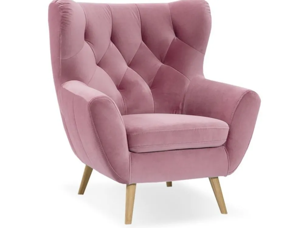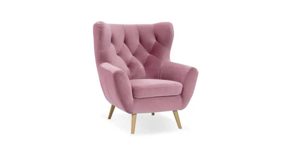 Fotel dostępny jest w unikatowej tkaninie o pięknym, różowym odcieniu Solo Idesin col. 255. Tkanina jest welwetowa, bardzo przyjemna i gładka w dotyku. Dodatkowo tkanina jest hydrofobowa! – technologia Nano Block.