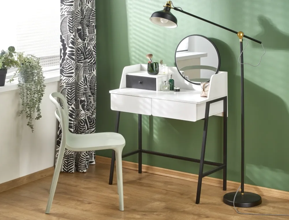 wymiary: 80/42/120 cm, materiał: lustro / płyta meblowa okleinowana – melamina / stal malowana proszkowo, kolor: biały – czarny