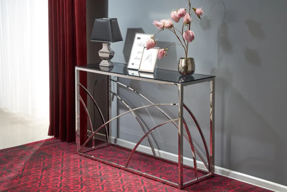 wymiary: 120/40/78 cm, materiał: szkło / stal chromowana, kolor: dymiony / srebrny