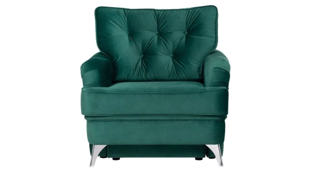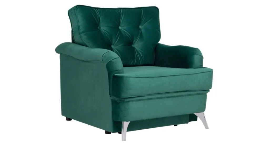 Fotel Sissi to doskonały przykład połączenia klasycznej stylistyki i wygody. W wypełnieniu siedziska zastosowano połączenie pianki HR oraz sprężyn falistych. Poduszki oparciowe posiadają wypełnienie silikonowe. Zastosowane materiały mają na celu zapewnienie komfortu na najwyższym poziomie. Bardzo charakterystyczna linia mebla i pikowane poduszki czynią ten model bardzo stylową propozycją dedykowaną głównie wnętrzom w stylu klasycznym lub glamour. Cała kolekcja obejmuje Sissi oferuje: kanapę trzyosobową z funkcją spania, kanapę dwuosobową i pufę, dzięki czemu można w prosty sposób stworzyć komplet mebli wypoczynkowych do salonu o różnej wielkości.