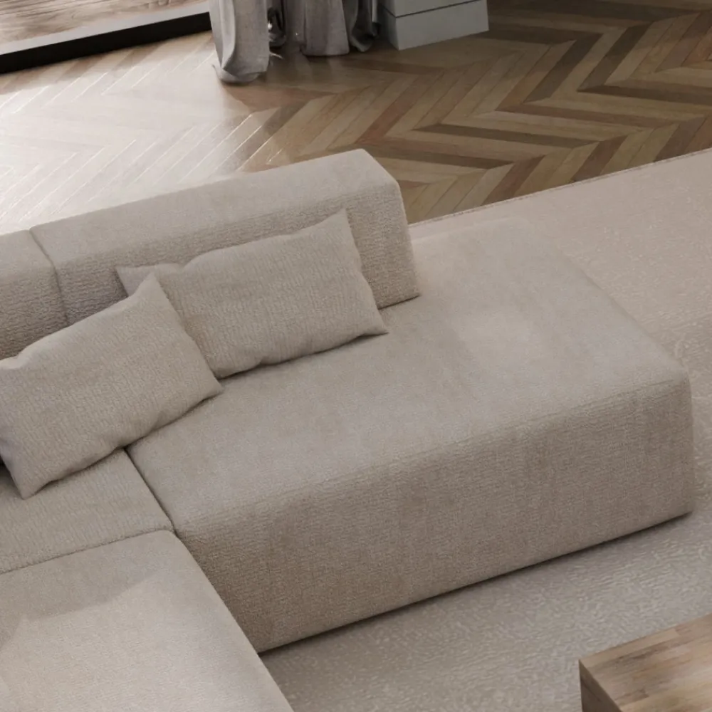 Obłe, nowoczesne kształty modułu prawostronnego nadają wnętrzu elegancji i przytulności. Miękkie siedzisko wypełnione pianką HR oraz sprężynami falistymi zapewnia wygodę podczas codziennego użytkowania. Takie połączenie materiałów gwarantuje trwałość siedziska i komfort przez długie lata, sprawdzając się zarówno przy codziennym relaksie, jak i spotkaniach z rodziną i znajomymi.