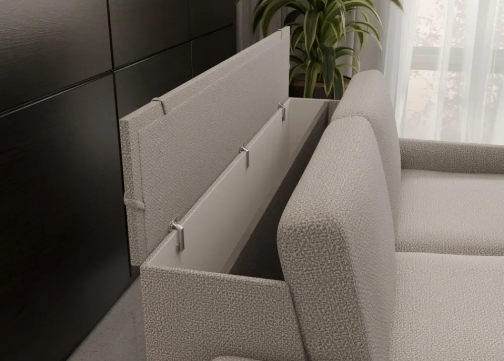 Sofa z pojemnikiem na pościel z tyłu – więcej miejsca, więcej porządku w Twoim salonie