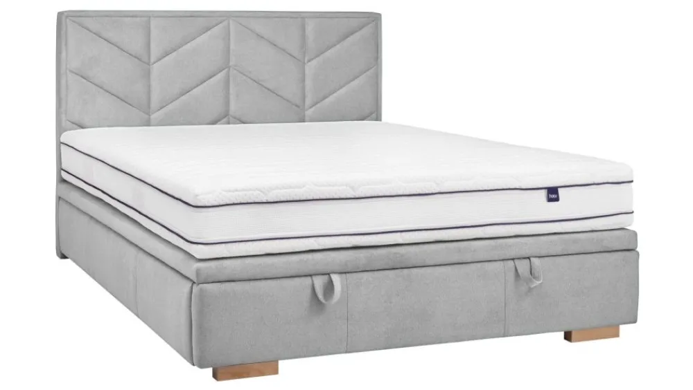 Łóżko Alma jest przykładem modelu, który jest w stanie uniwersalnie wpisać się we wnętrza o różnych stylach. Prostą zmianę wyglądu uzyskujemy dzięki możliwości wyboru tkaniny z bogatego wzornika. Zmiana tkaniny w przypadku mebli tapicerowanych powoduje ogromy wpływ na końcowy wygląd mebla. Dzięki temu możemy z powodzeniem dopasować wygląd łóżka do tworzonej aranżacji oraz wziąć pod uwagę własne preferencje odnośnie rodzaju tkaniny i jej właściwości. Elementem przykuwającym uwagę jest zdecydowanie wezgłowie łóżka, które zostało wykończone kostkami tapicerowanymi układającymi się we wzór kojarzący się wszystkim z tradycyjną „jodełką”. Właśnie ten wzór jest cechą charakterystyczną tego modelu. Zastosowany układ łączy w sobie minimalizm i elegancję. Próżno szukać tutaj wyszukanych elementów ozdobnych, w przypadku modelu Alma są one zupełnie zbędne. Pora aby zupełnie odmienić oblicze swojej sypialni – ten model zdecydowanie to umożliwi. Sypialnia z łóżkiem Alma producenta Hauss już nigdy nie będzie zwykłym miejscem do spania. Jeżeli do tej pory wygląd łóżka nie miał znaczenia, prezencja tego modelu zmieni to podejście. Prosta linia wcale nie wygląda topornie, gabaryt łóżka jest duży, jednak nie tworzy wrażenia ciężkości. Prosty zabieg w postaci delikatnego uniesienia boczków, wpłynął bardzo korzystnie na ogólny wygląd modelu.