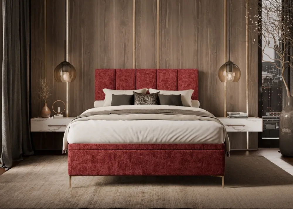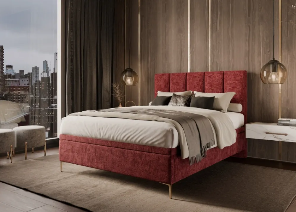 Łóżko ze zdjęć poglądowych wykonane zostało w bordowej szenili MIU 2033:
