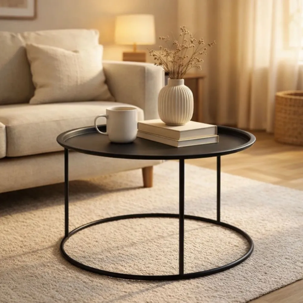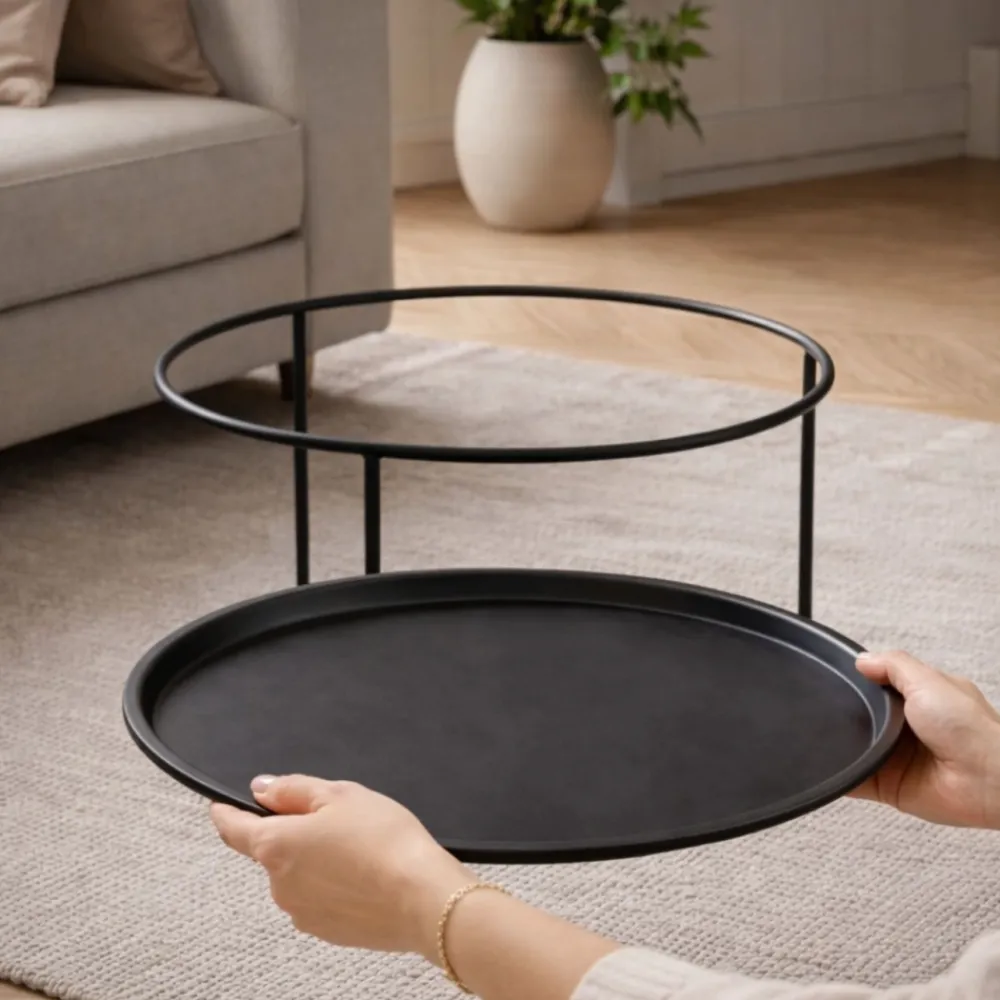 Metalowy stolik kawowy z funkcją tacy – nowoczesny minimalizm do salonu