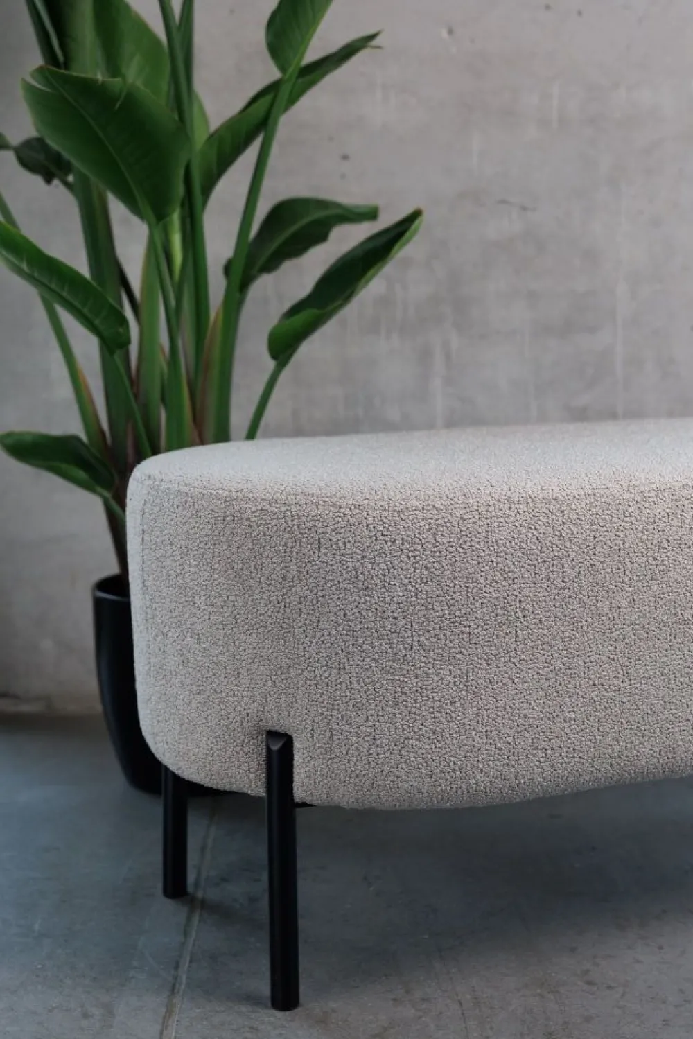 W stylu industrialnym, ten elegancki puf z wysokimi nóżkami w kolorze złota stanowi doskonały kontrast dla surowych, loftowych elementów. Wyobraź sobie surowe ceglane ściany, metalowe akcenty i minimalistyczne meble – w takim otoczeniu ten puf wnosi ciepło i elegancję, przełamując surowość wnętrza. Jego delikatne zaokrąglenia i luksusowa tkanina dodają wnętrzu przytulności, jednocześnie nie tracąc na nowoczesnym, industrialnym charakterze.