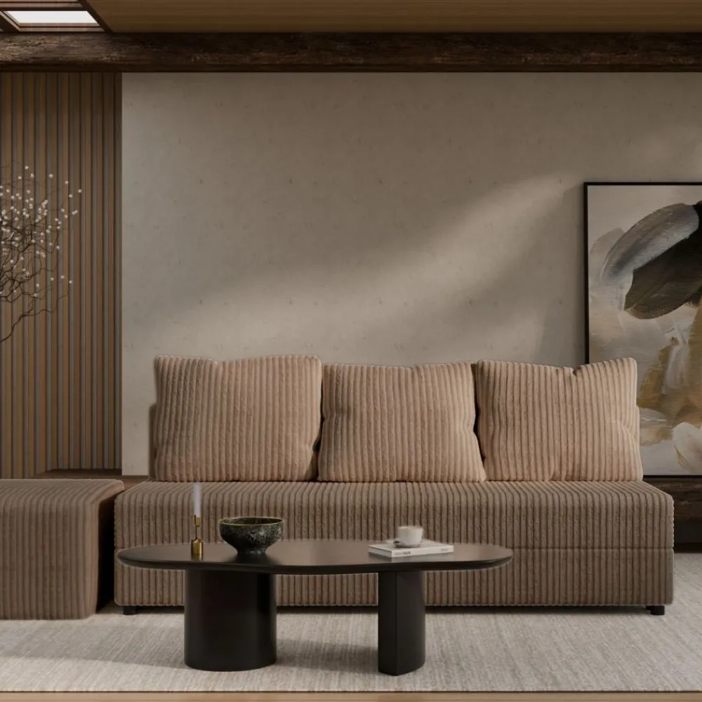 Kana͏pa͏ V͏ero z funkcją spania i poduch͏ami – nowoczesny͏ desing w͏ stylu japa͏ndi.