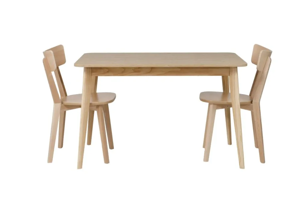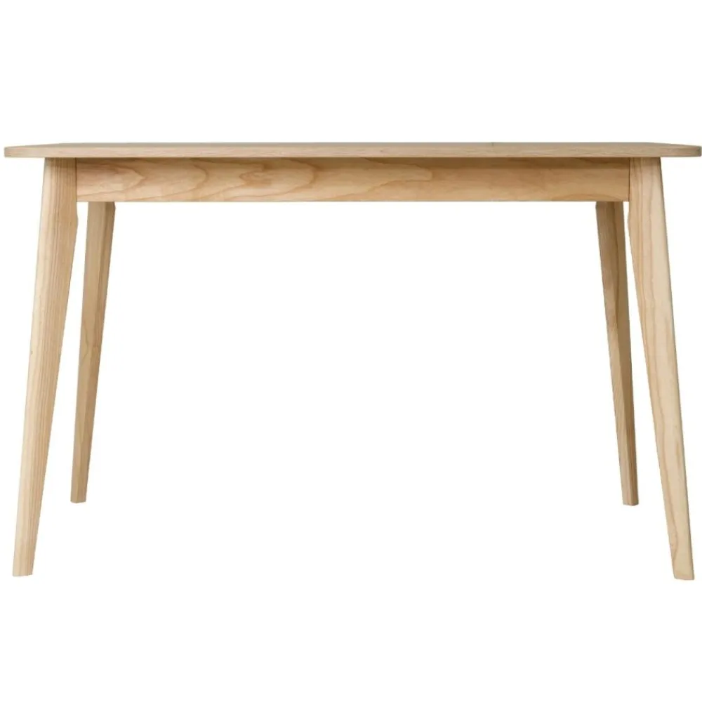 Ten stabilny stół charakteryzuje się wytrzymałą konstrukcją, opartą na drewnianej oskrzyni i solidnych nogach z jesionu. Skośne nogi zacięte pod kątem 10° zostały zaprojektowane nie tylko z myślą o stabilności, ale też o estetyce – dodają całości subtelnej dynamiki. Barwienie drewna pod kolor blatu oraz matowe lakierowanie sprawiają, że wszystkie elementy tworzą harmonijną kompozycję. Dzięki temu stół nie tylko prezentuje się elegancko, ale również jest odporny na codzienne użytkowanie. Konstrukcja nie zawiera elementów ruchomych, co eliminuje ryzyko niestabilności typowe dla stołów rozkładanych. To wybór, który posłuży na lata – zarówno wizualnie, jak i praktycznie.