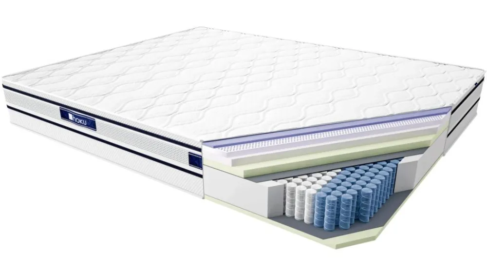 Z pośród kolekcji HOKU szczególnie wyróżnia się materac LATONA. Jedyny taki model, łączący w sobie pianki o zróżnicowanych właściwościach, dzięki którym uzyskujemy idealną powierzchnię do komfortowego i głębokiego wypoczynku. Zastosowane pianki: termoelastyczna VISCO, naturalny perforowany lateks, wysokoelastyczna HR oraz elastyczna PU pozwalają na idealne dopasowanie się do kształtu ciała, a niezależnie pracujące sprężyny kieszeniowe zapewniają prawidłową pozycję kręgosłupa podczas snu. Specjalnie opracowana budowa materaca gwarantuje jego trwałość i wygodę zachowując jednocześnie sprężystość nawet po latach użytkowania.
