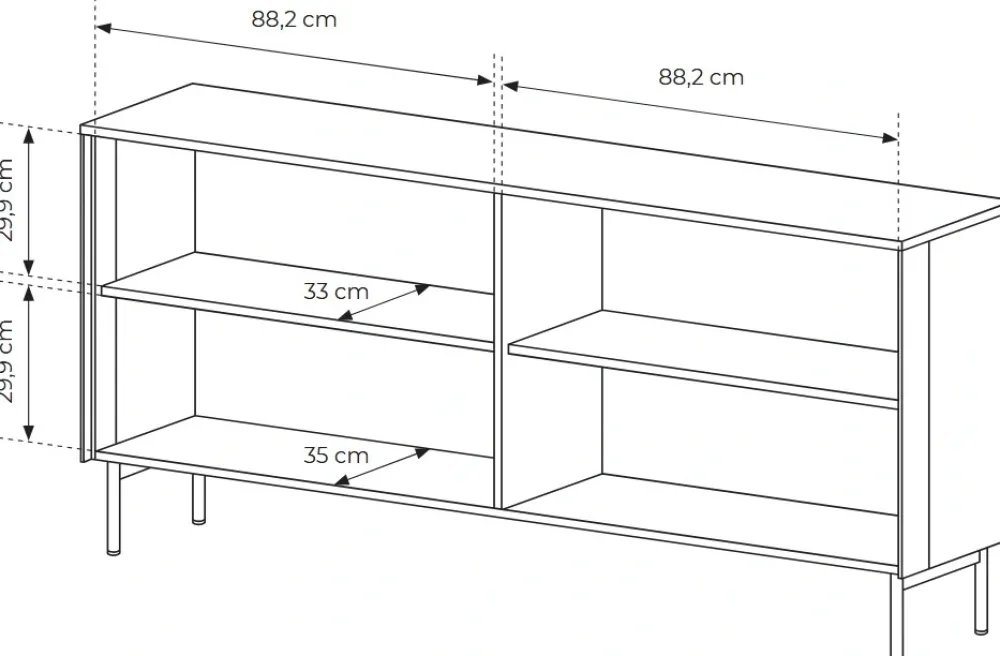 Dzięki przemyślanej konstrukcji, komoda Lumi 181 4D zapewnia dużą przestrzeń do przechowywania – zarówno w zamkniętych, jak i przeszklonych częściach. Za szklanymi frontami można wyeksponować porcelanę, dekoracje lub pamiątki, a pozostałe półki ukryją rzeczy codziennego użytku. Całość wspiera solidna konstrukcja z płyt MDF oraz obrzeża zabezpieczone trwałym ABS-em, co chroni mebel przed uszkodzeniami. Nóżki o wysokości 18 cm nadają bryle lekkości i ułatwiają utrzymanie czystości pod meblem, co jest szczególnie praktyczne przy odkurzaczach automatycznych. Dzięki harmonijnemu połączeniu designu i ergonomii, komoda Lumi to nie tylko ozdoba, ale przede wszystkim codzienna wygoda użytkowania.