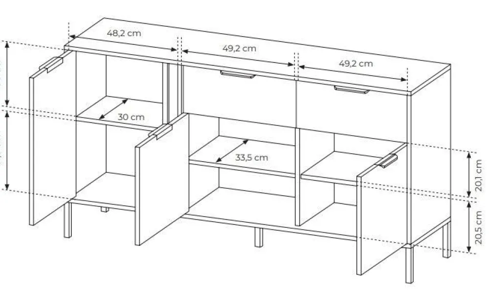 Wykonana z wytrzymałej płyty meblowej laminowanej z obrzeżami ABS.