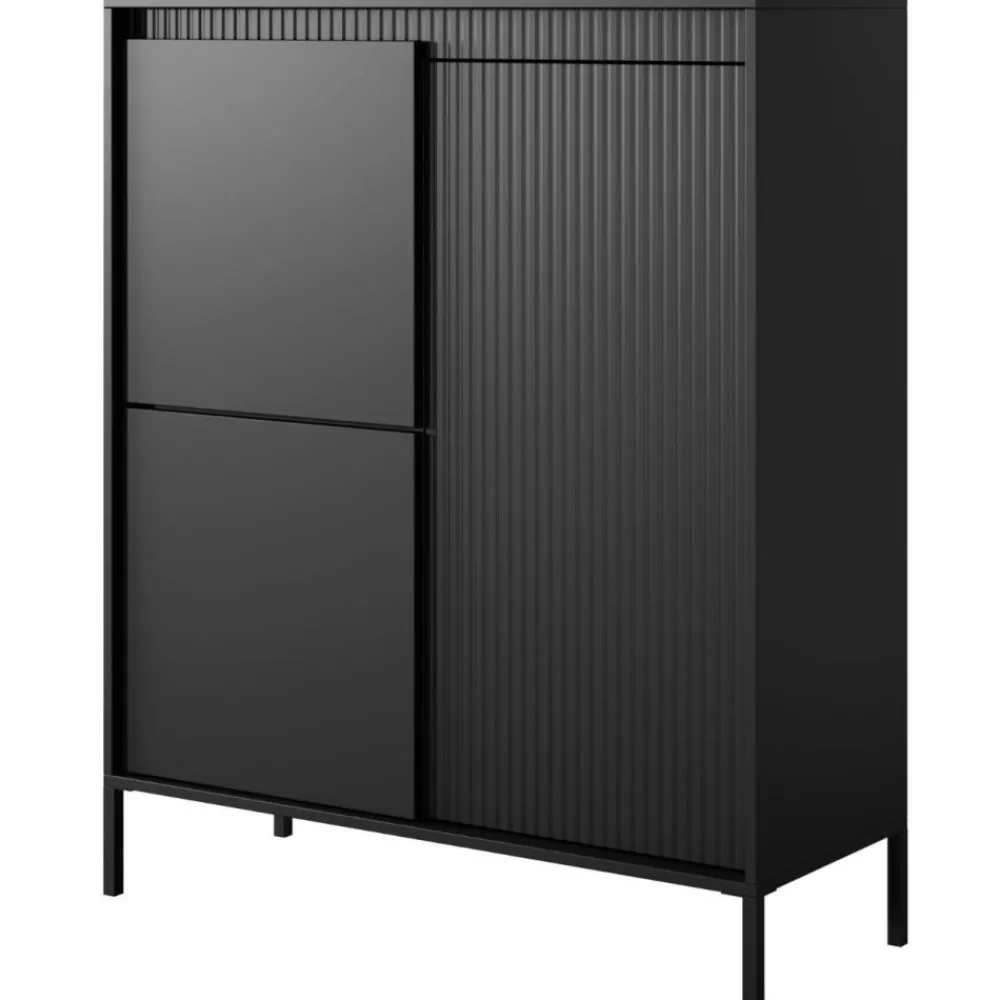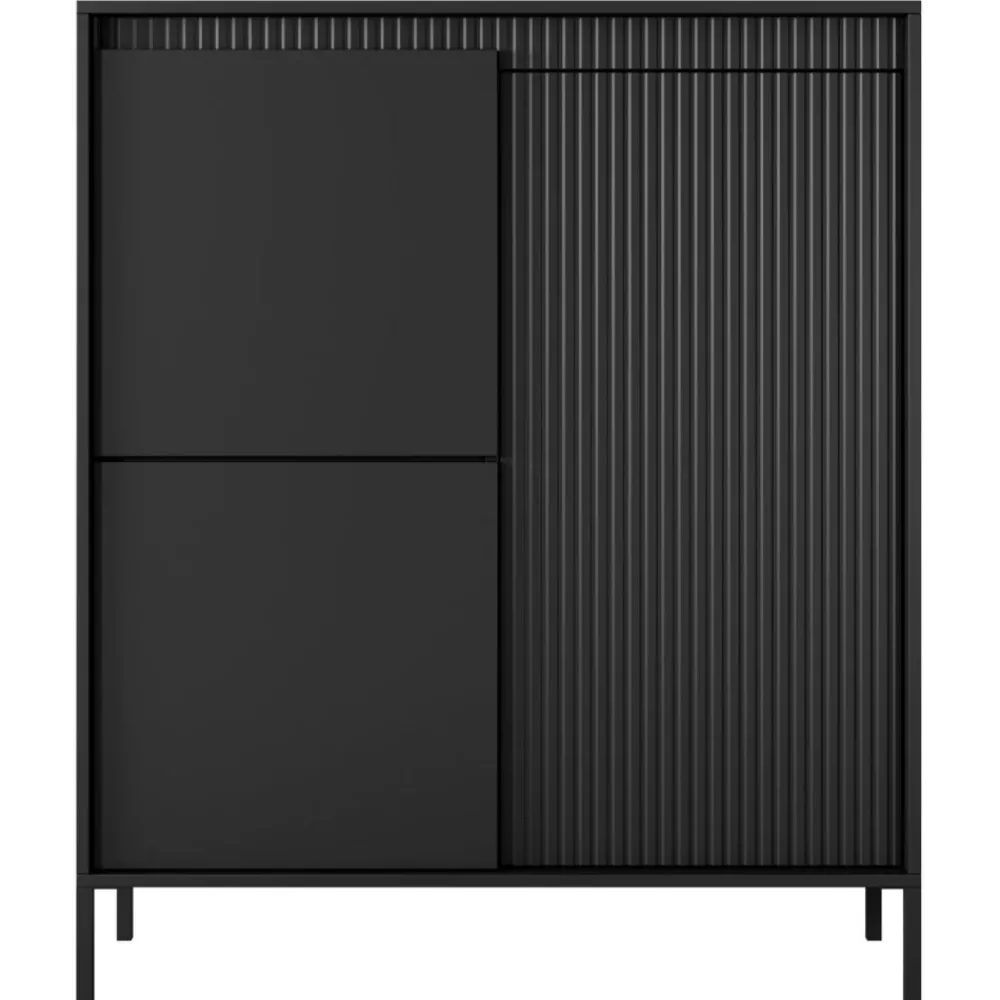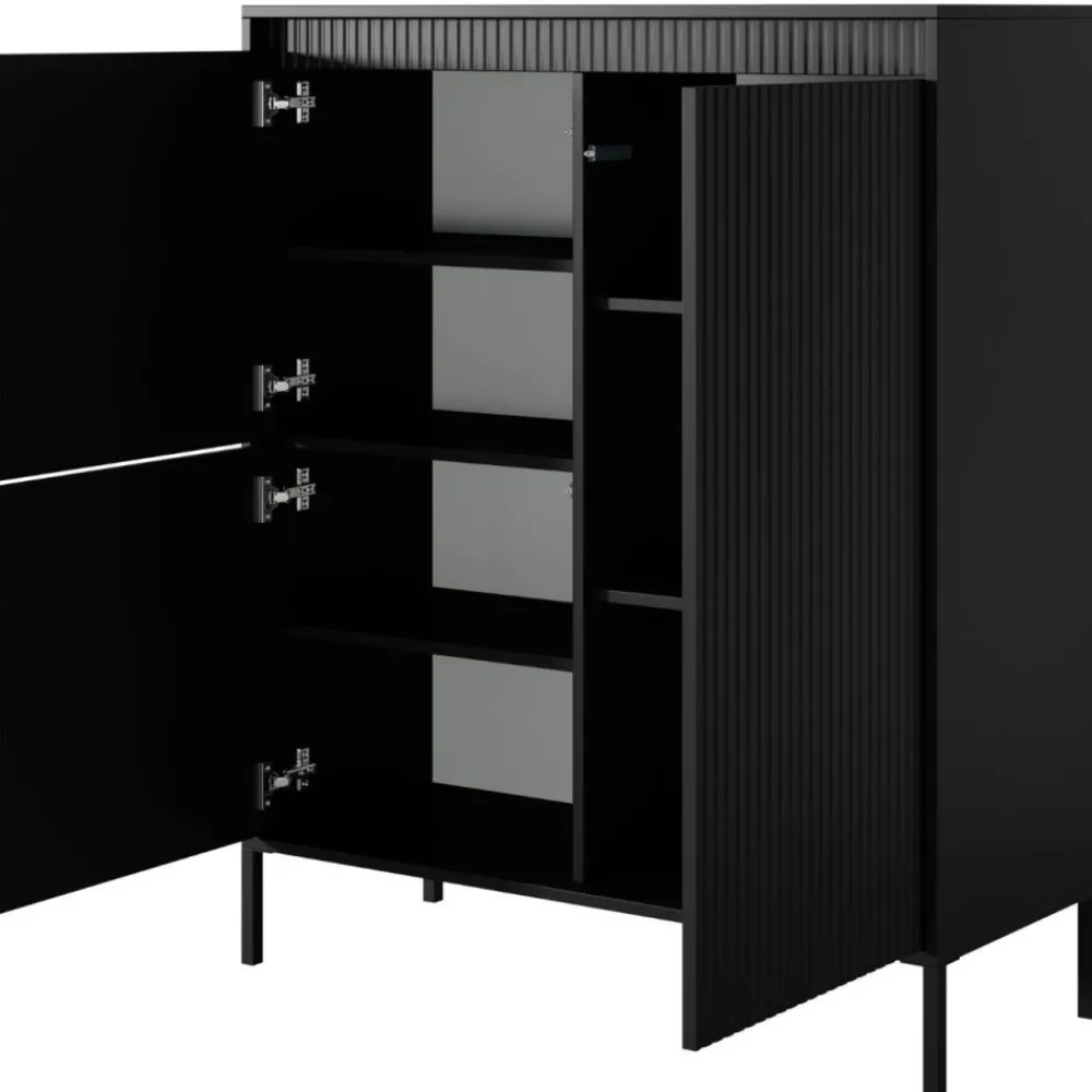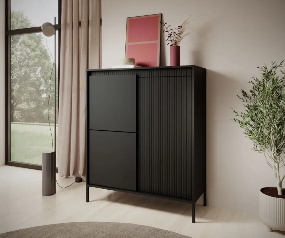 Czarna komoda z lamelami Senso – nowoczesny design do eleganckiego wnętrza