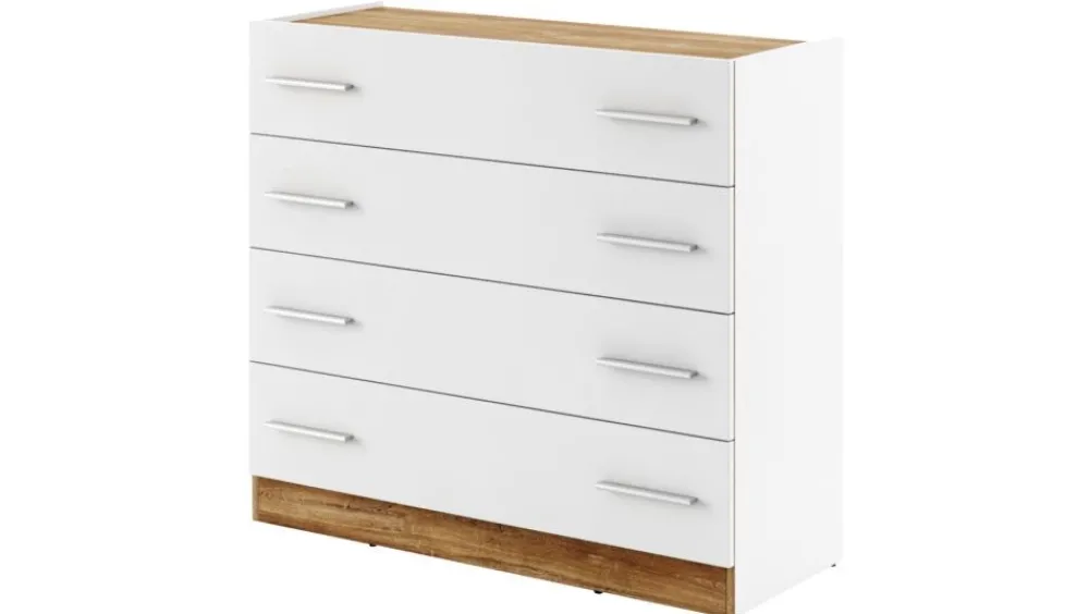 Posiadaczom większych sypialni, którzy posiadają wolne miejsce polecana jest praktyczna komoda. Jest to bardzo funkcjonalny mebel, cztery pojemne szuflady ułatwiają organizację i przechowywanie rzeczy. Komoda może być stosowana jako toaletka. Cechą charakterystyczną tego mebla jest obniżony blat, który skutecznie zabezpiecza położone na niej drobiazgi.