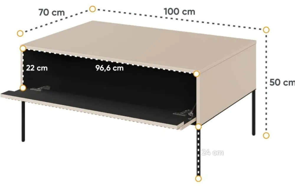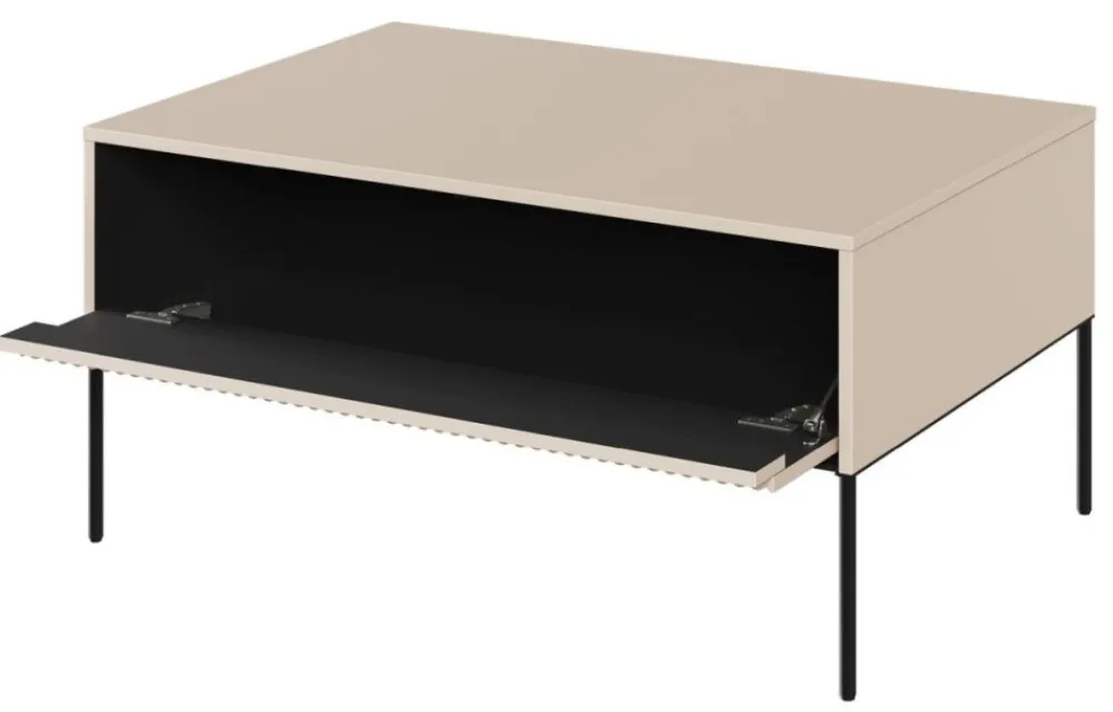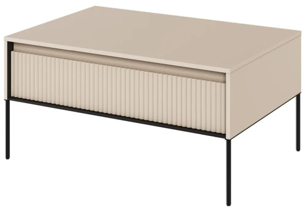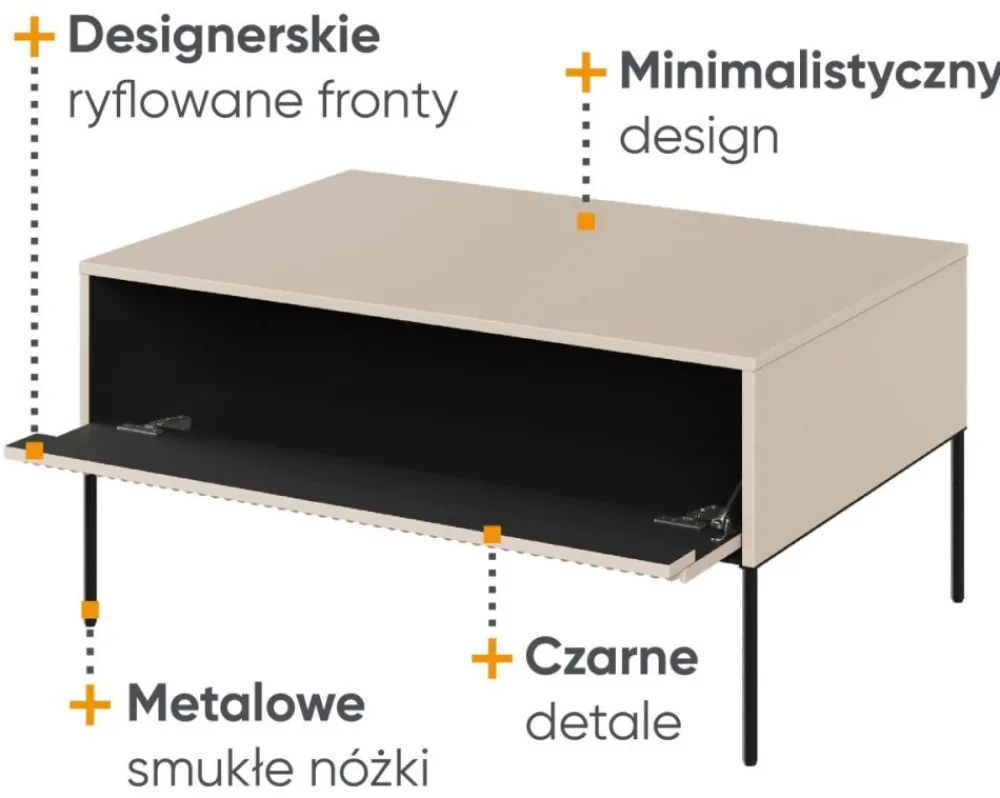 Stolik wspierany jest przez smukłe metalowe nóżki, co nadaje mu lekkości i elegancji. Dostępny jest w szerokiej gamie kolorystycznej, dzięki czemu z łatwością znajdziesz odpowiedni stolik, który idealnie wpasuje się w wystrój Twojego wnętrza. Niezależnie od preferowanego stylu – klasycznego, rustykalnego czy nowoczesnego – nasz stolik kawowy z ryflowanym frontem spełni Twoje oczekiwania.