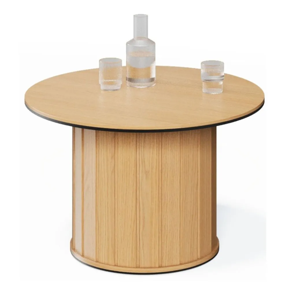 Stoliki kawowy Rotto wyróżnia się zaokrągloną podstawą z lamelowym wzorem, która dodaje mu niepowtarzalnego charakteru i nowoczesnego stylu. Naturalny, ciepły odcień drewna doda wnętrzu przytulności i elegancji. Stabilna i bezpieczna konstrukcja o delikatnych, miękkich liniach idealnie wpisuje się w najnowsze trendy aranżacyjne.