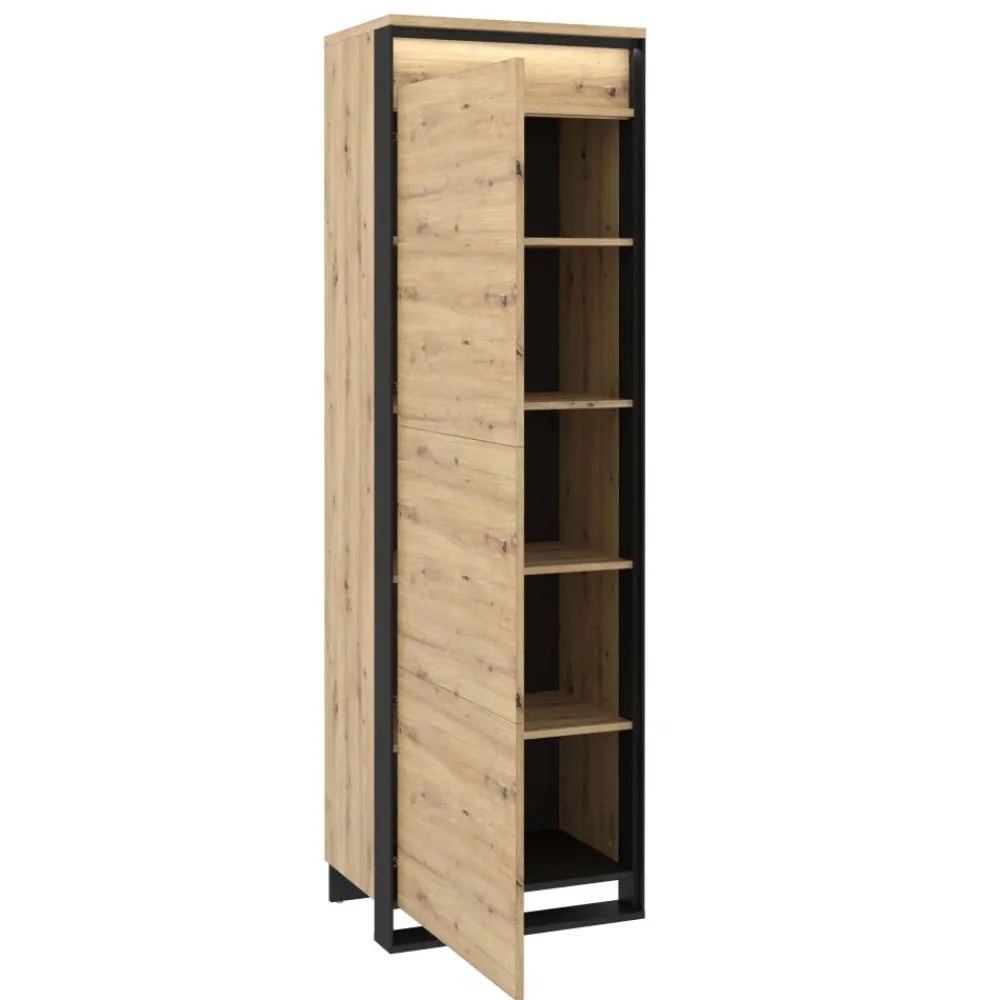 Kolekcja Quant zainspirowana stylem loft została unowocześniona na potrzeby dzisiejszych aranżacji. Czarne nogi tworzące jednocześnie obramowanie mebla to element wyróżniający kolekcję. Fronty mebli zostały wysunięte do przodu dzięki czemu tworzą efekt trójwymiarowości. Efektownym uzupełnieniem jest listwa z ledowym oświetleniem w cenie. Witryny z kolekcją mogą być dodatkowo uzupełnione o opcjonalne oświetlenie półek. Kolor dąb artisan i czerń to doskonałe połączenie do nowoczesnego loftu.