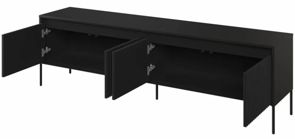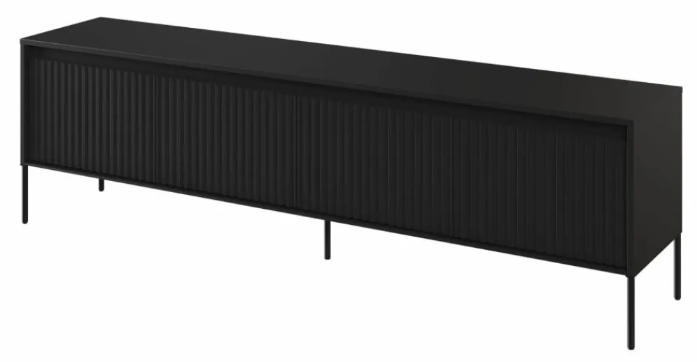 Jej nowoczesny design i wyjątkowe, ryflowane fronty nadają meblowi niepowtarzalny wygląd, który przyciąga uwagę i dodaje uroku pomieszczeniu. Nie tylko pełni funkcję przechowywania elektroniki, ale także stanowi dekoracyjny element wystroju wnętrza, który wniesie nową energię do Twojego salonu.
